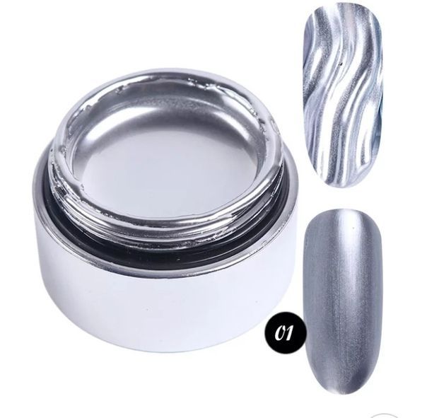 Гель-краска для дизайна ногтей с зеркальным эффектом СЕРЕБРО