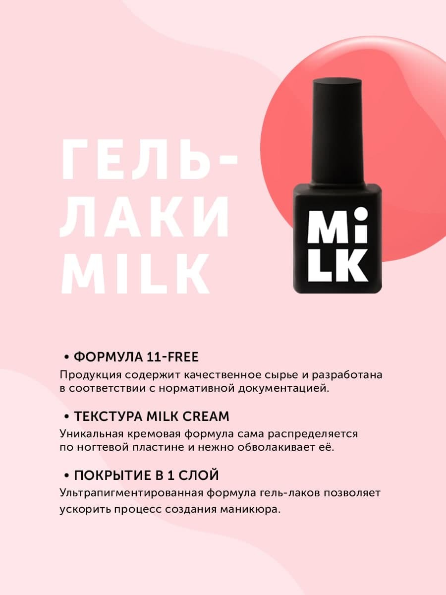 Гель-лаки MILK упакованы в стильные флаконы, которые будут идеально смотреться на твоих полках.
