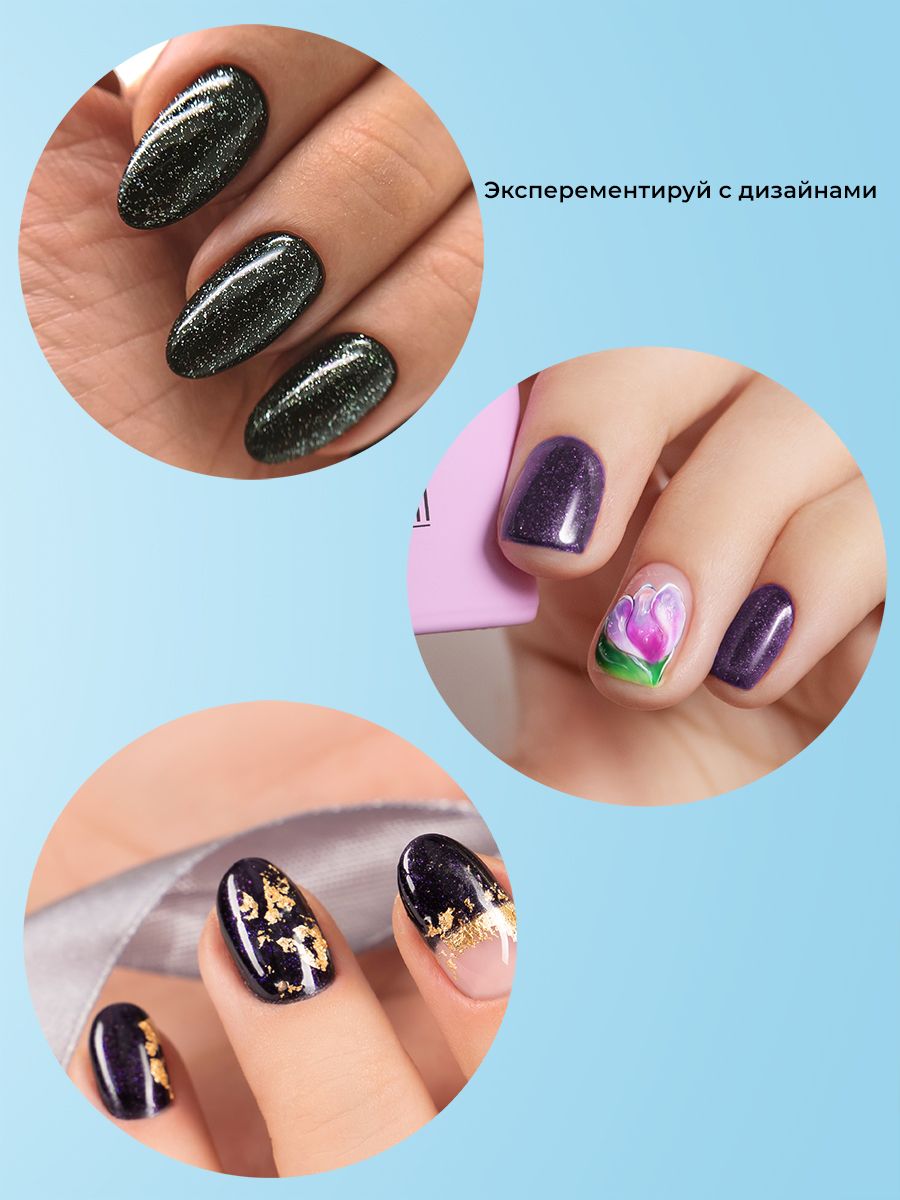 В палитре представлено более 350 разнообразных оттенков - от нежных пастельных до ярких выразительных! Лак не растекается, не утяжеляет ногти, самовыравнивается, укрепляет ногтевую пластину. Уникальная парфюмерная композиция придает гель-лаку приятный аромат. Срок носки гель-лака - до 4 недель.