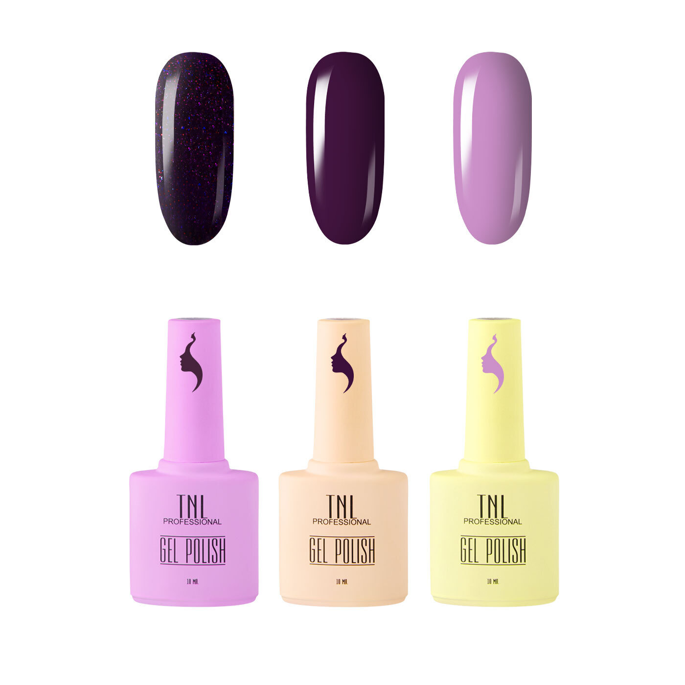 Гель лак для ногтей набор TNL 8 чувств - оттенки 304, 213, 222 (10 мл.) бордовый фиолетовый сиреневый для ногтей