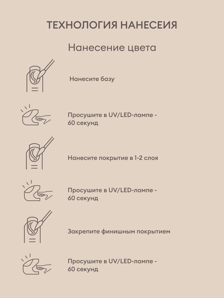 Имеет сбалансированную консистенцию, обеспечивающую легкое нанесение и равномерное покрытие. Материал содержит два магнитных пигмента в цветной основе, которые добавляют нежный блеск для жемчужного маникюра. Идеально подходит для создания текстурных дизайнов, которые создаются при помощи дотса или апельсиновой палочки на непросушенном материале.  Сияющий гель-лак для маникюра отличается плотной пигментацию, обеспечивая яркий цвет и невероятное сияние. Материал полимеризуется в UV/LED лампе за 60-120 секунд, и при правильной технологии нанесения не потеряет свой жемчужный блеск на протяжении всего времени носки – до 4-х недель.