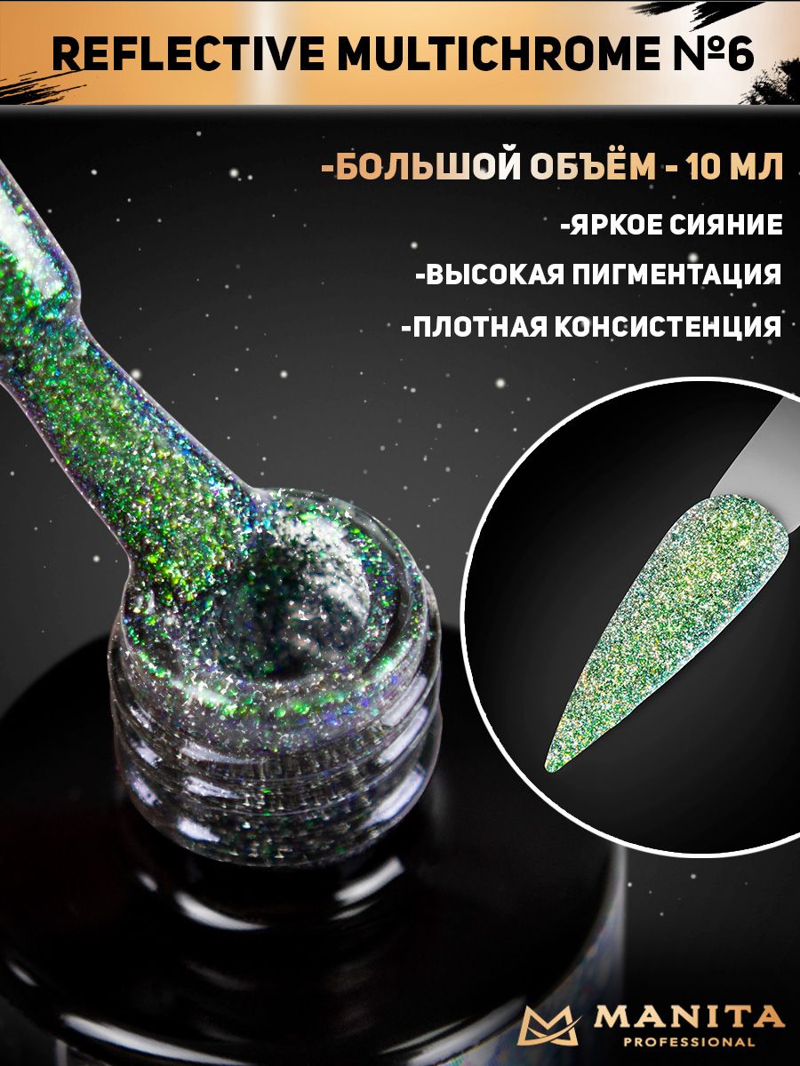 Описание: Гель-лаки светоотражающие дают огромные возможности для самовыражения благодаря богатым палитрам и цветовым решениям. Гель-лак, отражающий искусственный свет, появились давно. Популярные люминесцентные составы, светящиеся в темноте, а также втирка, позволяющая добиться похожего эффекта неповторимого мерцания. При дневном свете такой маникюр не привлекает много внимания и напоминает эффект голографического песка, но светодиоды или фотовспышка способны сотворить с ним настоящую магию! Каждый оттенок палитры кардинально меняет свой эффект - днем цвет мягкий, а при попадании на него яркого неонового излучения, гель-лак начинает светиться как диско шар. Гель лак светоотражающий имеет среднюю консистенцию и идеальную укрывистость, завораживая блеском яркого шиммера. Эффект самовыравнивания не допускает гель-лаку затекать на кутикулу, оставляя ровное покрытие.Технология нанесения гель лака светоотражающего: 1. Придайте ногтям необходимую форму и сделайте маникюр привычным способом. Продезинфицируйте, обезжирьте ногтевую пластину, чтобы очистить ее и нанесите праймер для гель лака MANITA PROFESSIONAL. 2. Равномерно нанесите базу для гель лака MANITA PROFESSIONAL и сушите в LED-лампе 1 минуту, в UV-лампе 2 минуты. 3. В два слоя нанесите гель лак светоотражающий для ногтей MULTICHROME и сушите каждый слой по отдельности в LED-лампе 1 минуту, в UV-лампе 2 минуты после каждого слоя. 4. В качестве закрепляющего покрытия нанесите топ для гель лака MANITA и сушите в LED-лампе 1 минуту, в UV-лампе 2 минуты. 5. При необходимости удалите липкий слой обезжиривателем.6. В качестве дополнительного ухода используйте масло для кутикулы. Светоотражающий гель-лак будет радовать вас своей стойкостью и яркостью до 3-ёх недель.