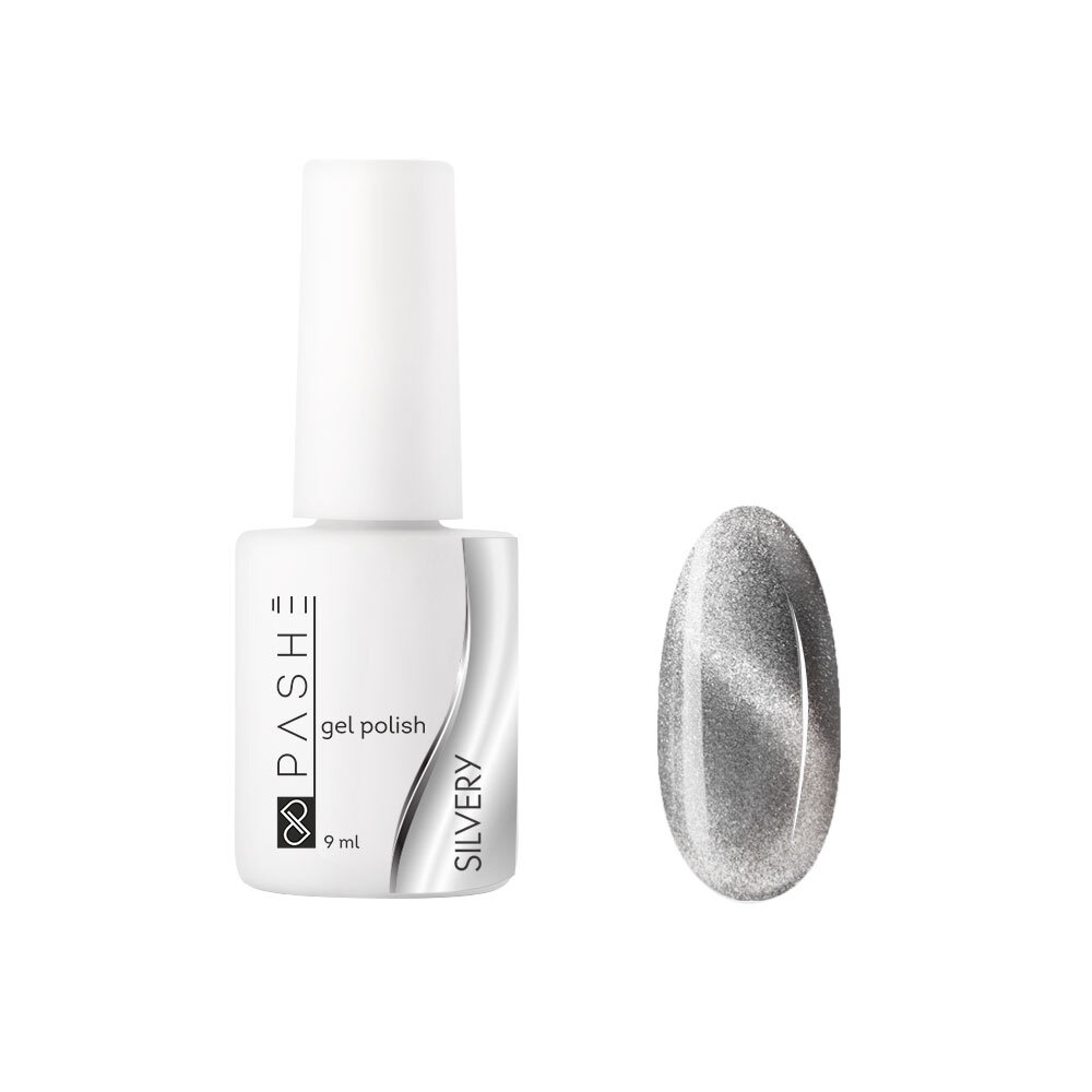 Гель лак PASHE кошачий глаз Silvery (9мл.) для ногтей серебристый