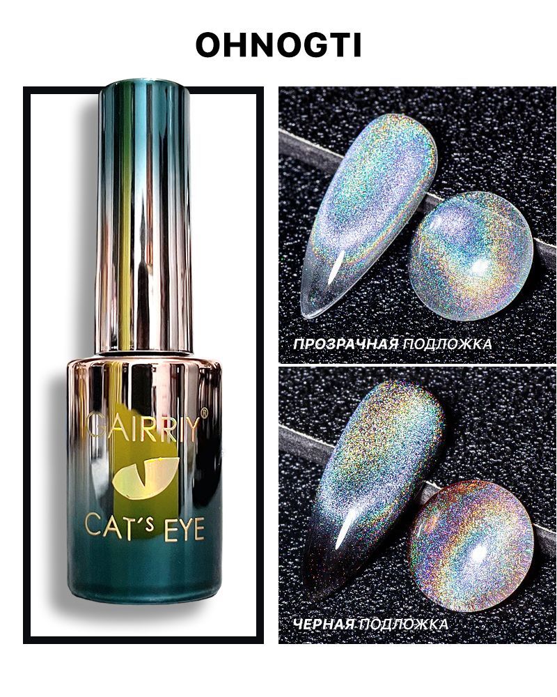 Гель-лак призма , радужный кошачий глаз с эффектом голографической втирки / Rainbow Cat Eye Gel / Переливающися гель-лак для ногтей