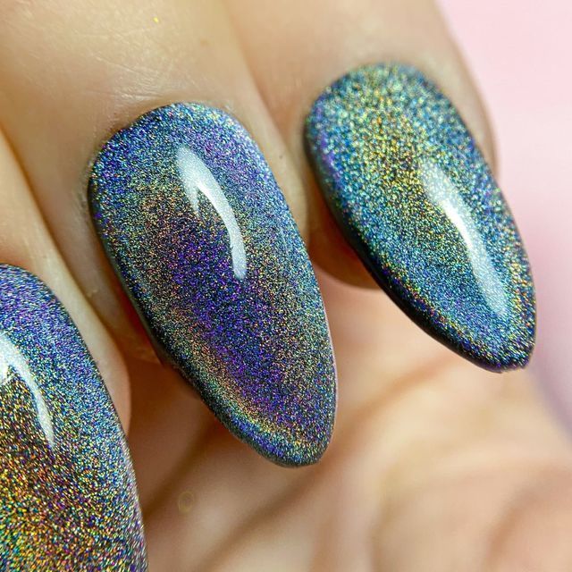 Особенно эффектно наш гель-лак будет смотреться на подложке из черного цвета. Если нанести гель-лак призму для ногтей на черный или темно синий фон, то создастся эффект космоса или северного сияния . 🌌