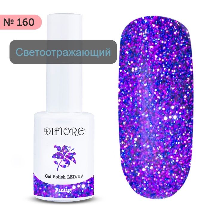 Гель-лак Светоотражающий фиолетовый №160 для ногтей, маникюра и педикюра. Годен до: 08.2026