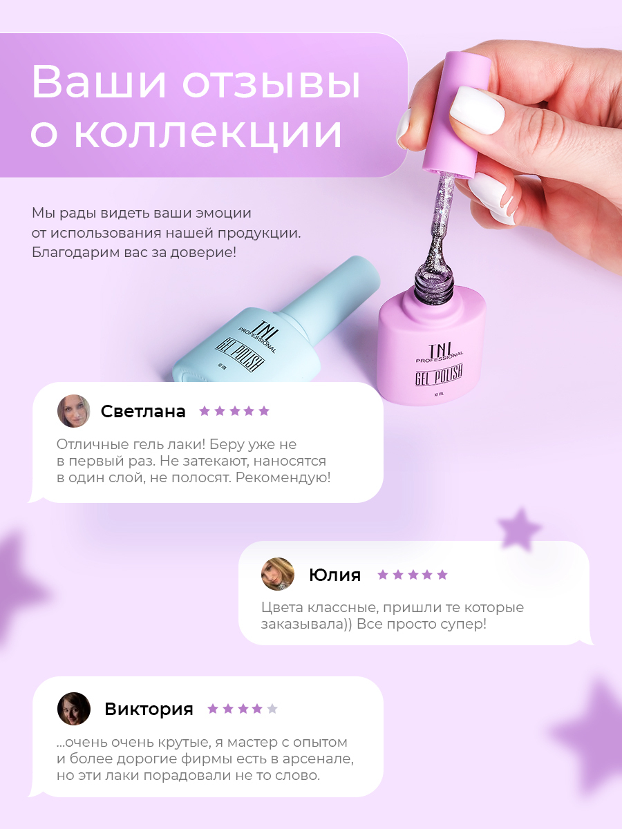 Линейка получила восторженные отзывы от топовых мастеров. Соберите свою уникальную коллекцию гель-лаков вместе с TNL Professional!