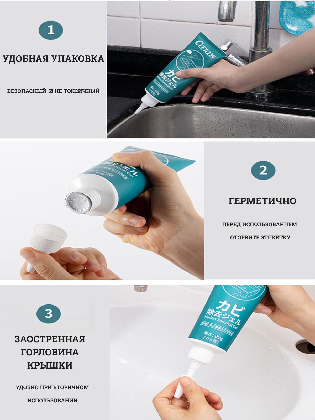Гель для удаления плесени - идеальное решение для стойких пятен плесени. Средство цепляется и проникает в пятна на плитке, затирке, душе и ванной. Благодаря кислородному составу тройного действия глубоко проникает и дезинфицирует. Убивает до 99% бактерий и микробов. Быстродействующая мощная концентрированная гелиевая формула цепляется за плитку, силиконовый герметик вокруг окон, раковин и ванн, насадки для душа, бассейн, стиральных и посудомоечных машин.Меры предосторожности: использовать строго по назначению. Применять только в резиновых перчатках! Перед первым применением провести тест на обесцвечивание поверхности на незаметном участке, особенно на цветных швах! Хранить в темном прохладном месте, вдали от детей, солнечных лучей и тепла. Товары CEETOON