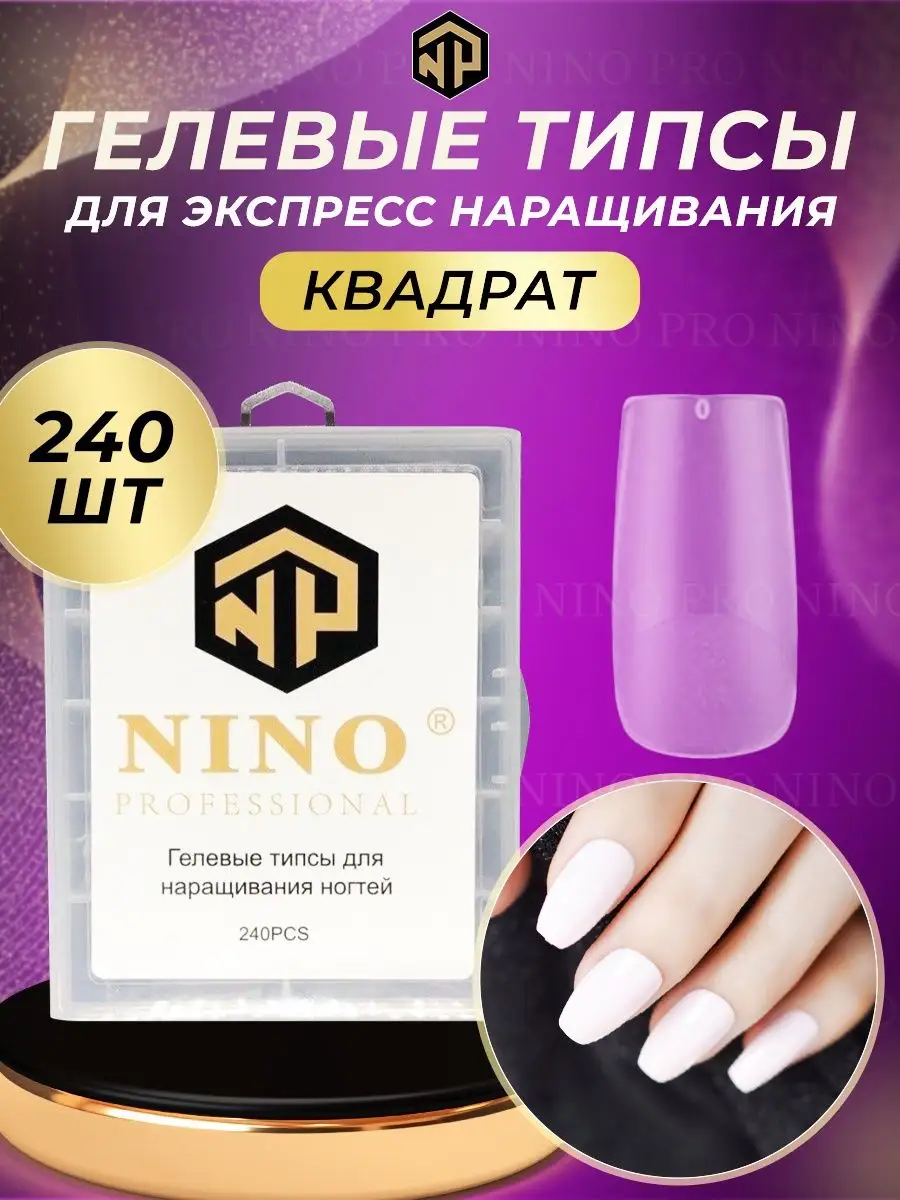 Комплектация NINO гелевые типсы для ногтей -240шт; пластиковый контейнер для хранения