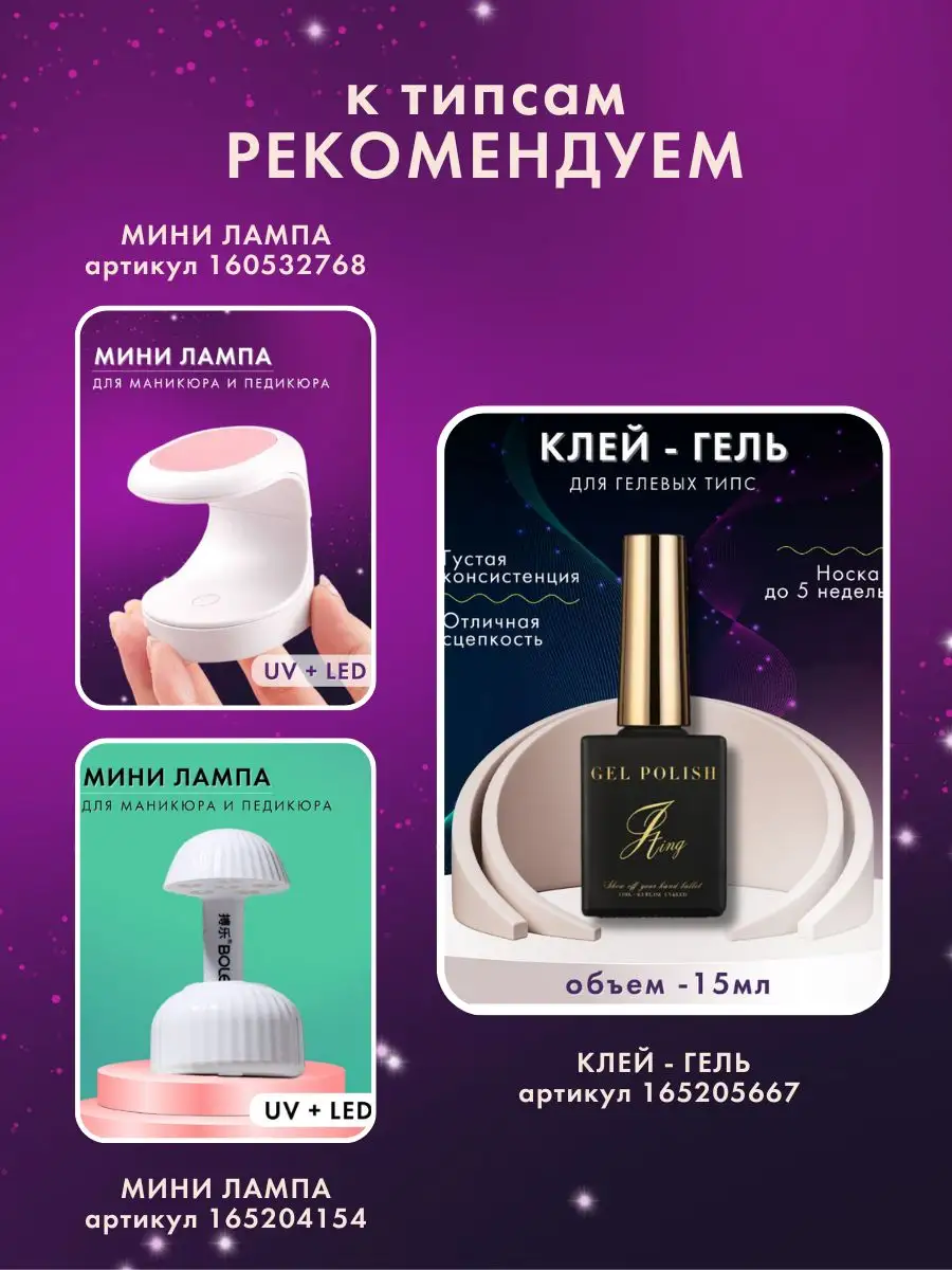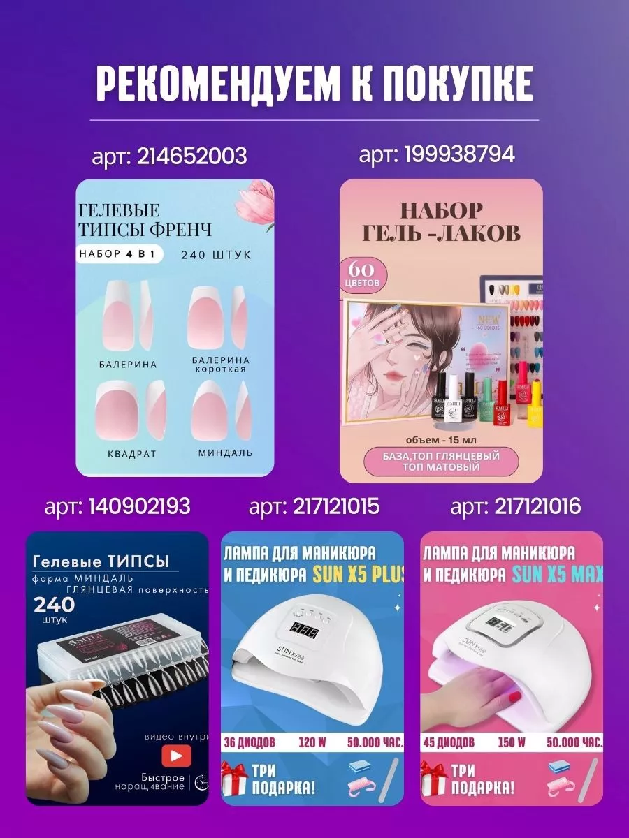 Комплектация Гелевые типсы овал 240 штук