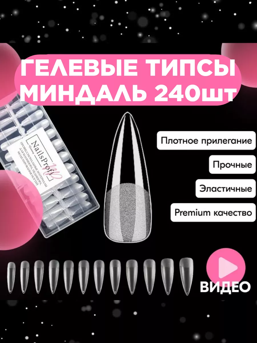 Комплектация гелевые типсы для маникюра 120 штук; гелевые типсы формы миндаль для наращивания 120 штук