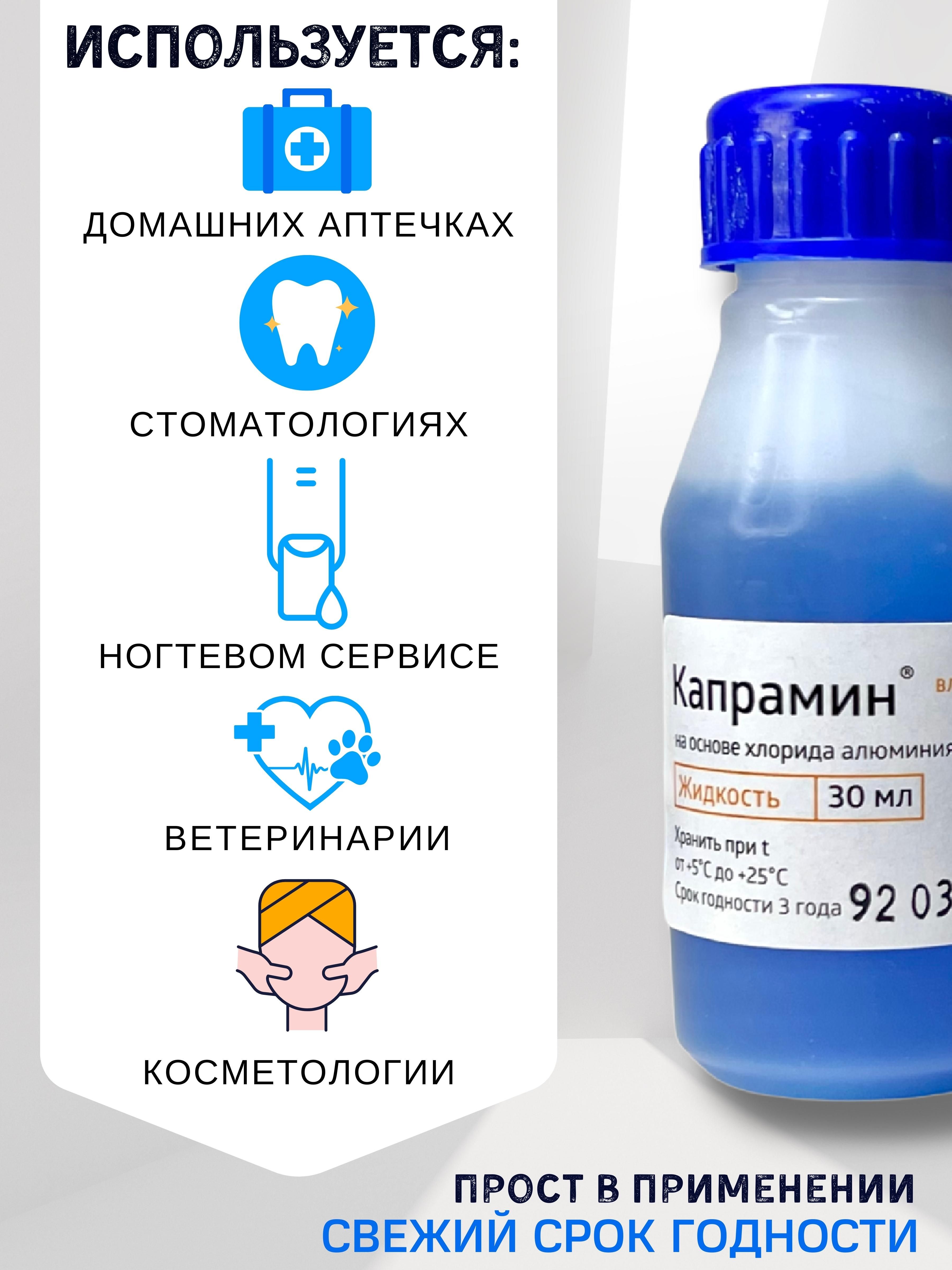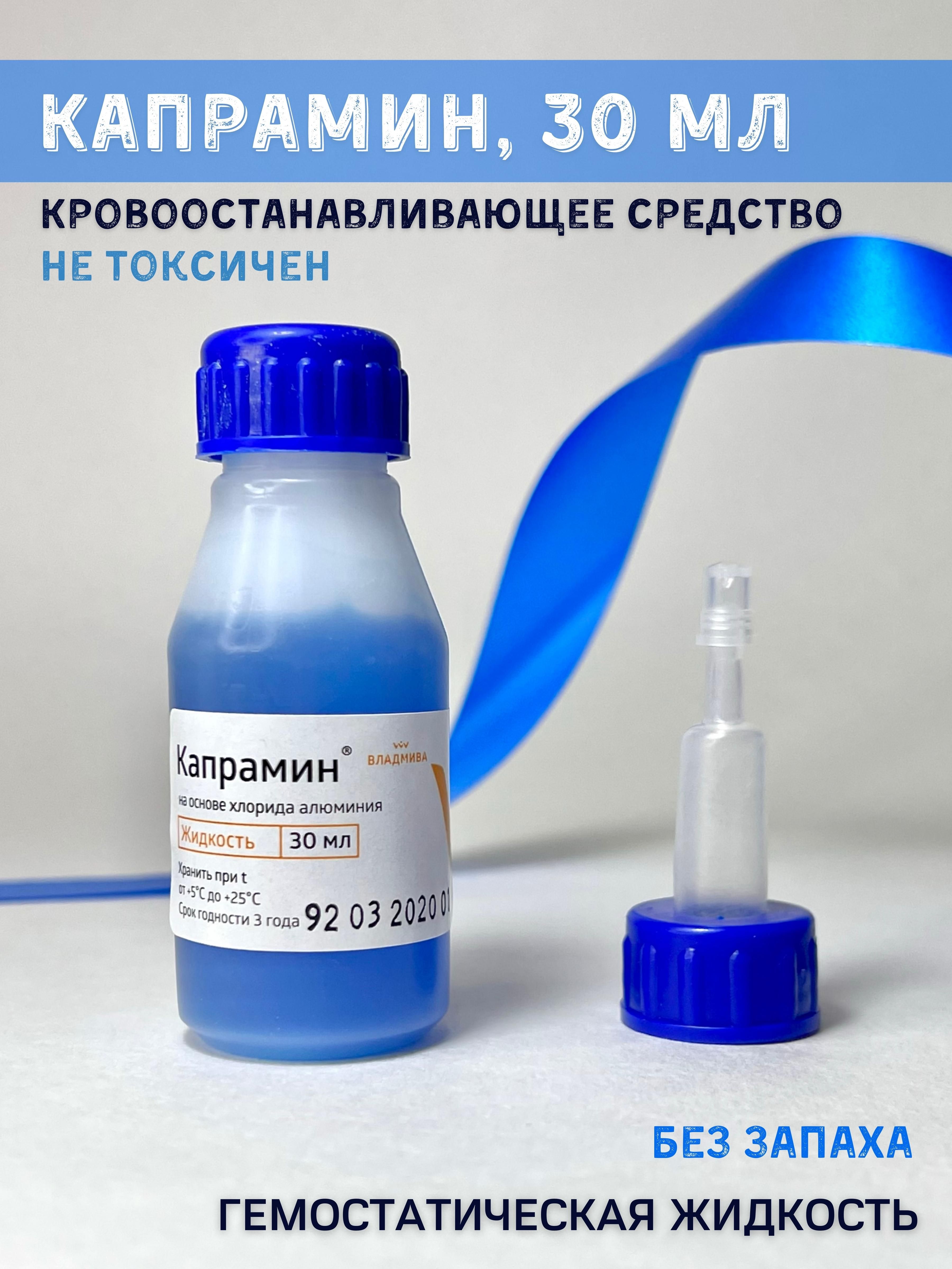 Гемостатическое, дезинфицирующее, кровоостанавливающее средство, жидкость для остановки крови Капрамин 30 мл 1 штука