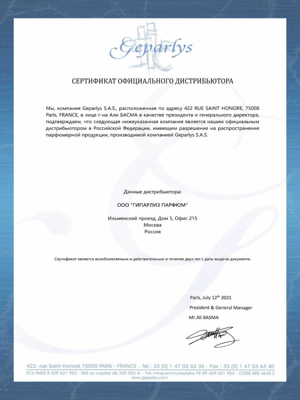 Бренд GEPARLYS PARFUMS PARIS
