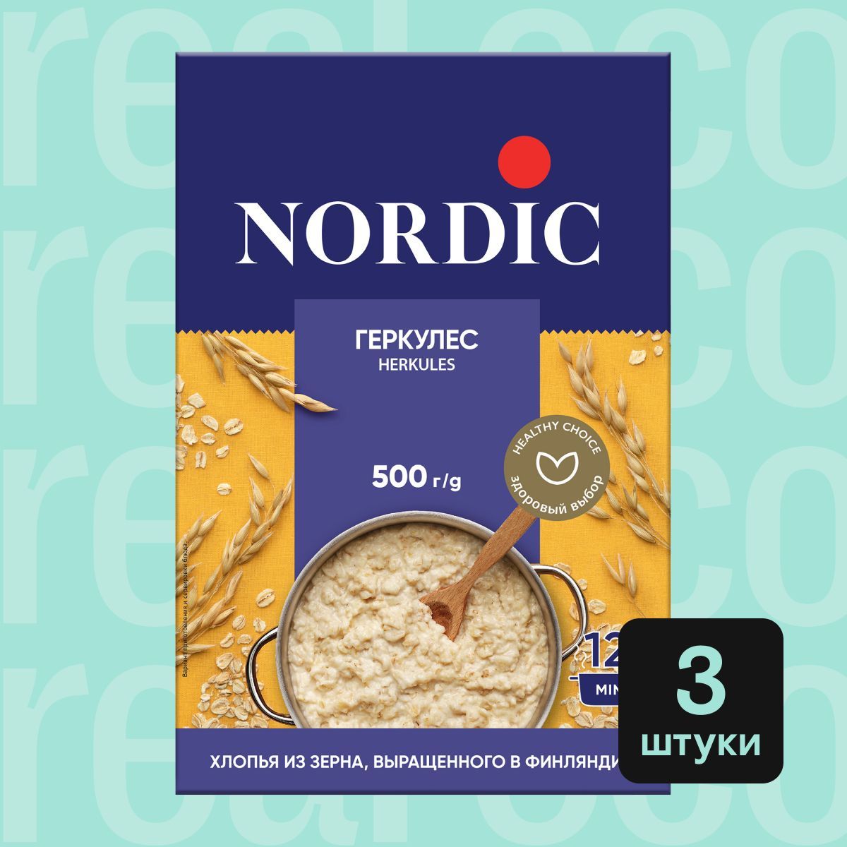 Геркулес финский Nordic, овсяные хлопья, 3 упаковки по 500г