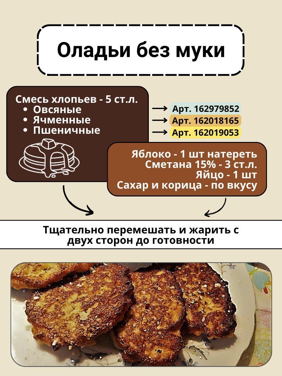 Описание: Овсяные хлопья – это крупа из овса, которая прошла несколько стадий промышленной переработки: чистку, шлифовку, пропаривание. Овсяные хлопья «Геркулес» характеризуются быстрой развариваемостью и хорошей усвояемостью; они рекомендуются как диетический весьма питательный продукт. В них содержится (%) до 65 крахмала, 2,5 — сахара, 14,5 — белков, 6,5— жира и 1,8— зольных элементов. Среди белков присутствуют (%): альбумины (6—8), глобулины (22), (около 35) белки группы проламинов и (35) глютелины. Белки по сравнению с другими крупами характеризуются высоким содержанием лизина, тирозина и цистина. Среди минеральных веществ сравнительно много соединений кальция. Овсяные хлопья содержат большое количество пищевых волокон, способствуют снижению концентрации холестерина в крови, улучшают деятельность сердца. Если в готовые завтраки не добавлялись соль и сахар, овсяная диета может оказаться благотворной для предотвращения развития гипертонии и диабета. Овсяные хлопья также используют в косметических целях, например, в масках для лица. Так же в нашем ассортименте есть хлопья овсяные Геркулес ГОСТ 3кг. Хлопья овсяные Геркулес ГОСТ 5кг. Хлопья овсяные Геркулес ГОСТ 10кг. Дата окончания действия сертификата/декларации 14.07.2024 Дата регистрации сертификата/декларации 15.07.2021 Хлопья овсяные Геркулес ГОСТ 21149-93 Номер декларации соответствия ЕАЭС № RU Д-RU.РА01.В.03648/21