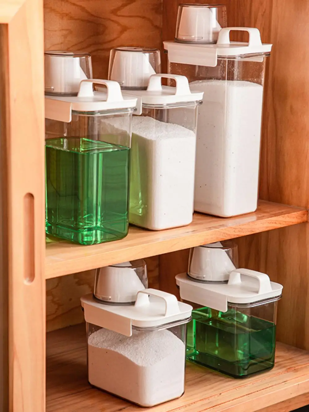 7. Многофункциональный контейнер не только идеально подходит для стирального порошка, но также может использоваться для корма для домашних животных. Порошок для стирки. Крупы, закуски, орехи, сахар, кофе, чай и т. Д.