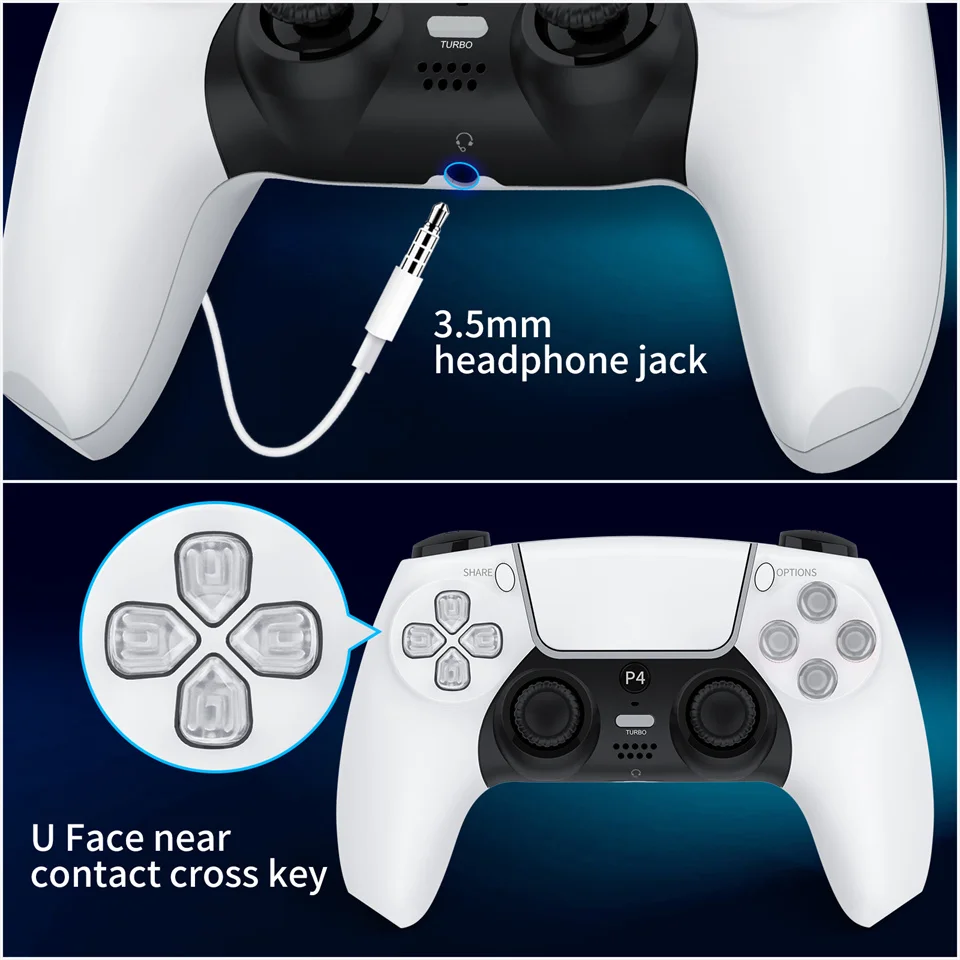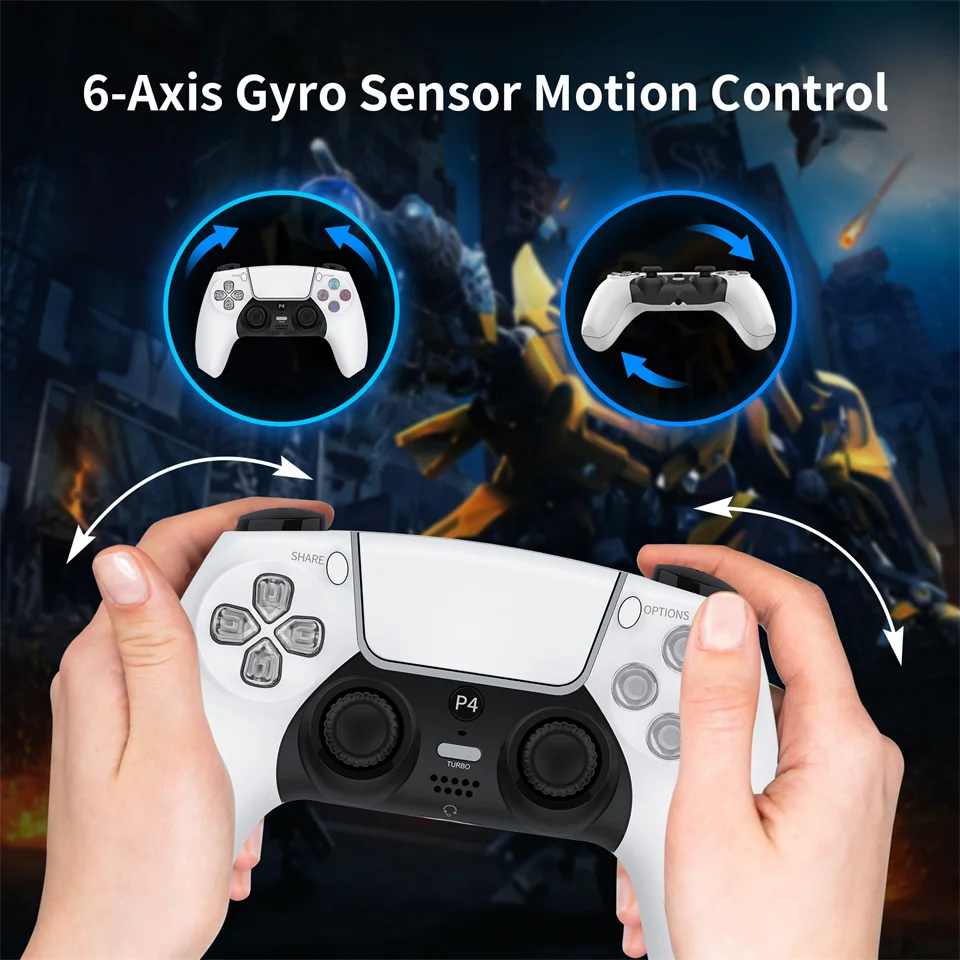 • Интерфейс Bluetooth :Благодаря интерфейсу Bluetooth этот геймпад обеспечивает беспрепятственное соединение с вашей PS4, PS3, игровой консолью, ПК или телефоном Android, предлагая игры без задержек.