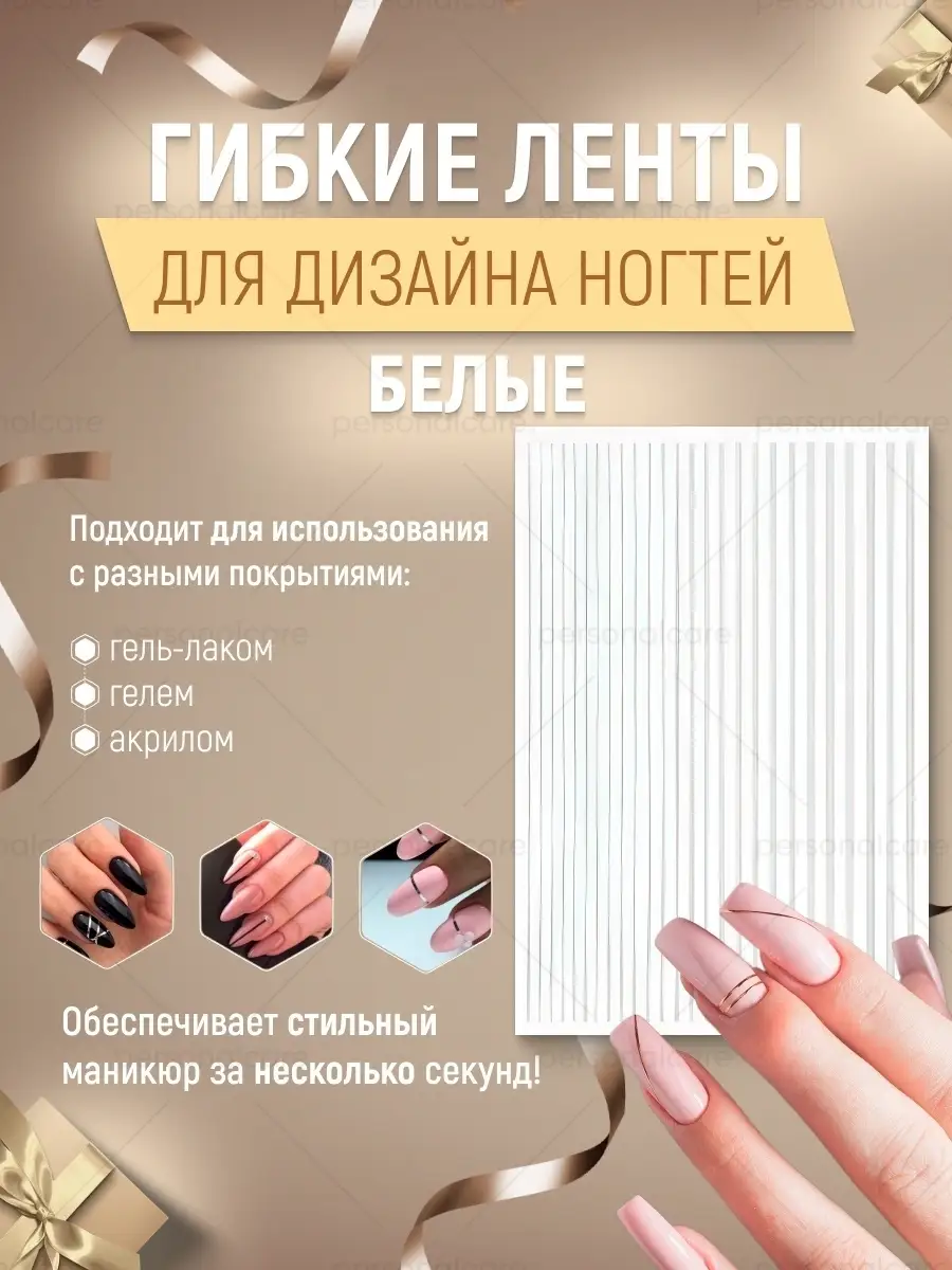 Гибкая лента для дизайна ногтей Белый