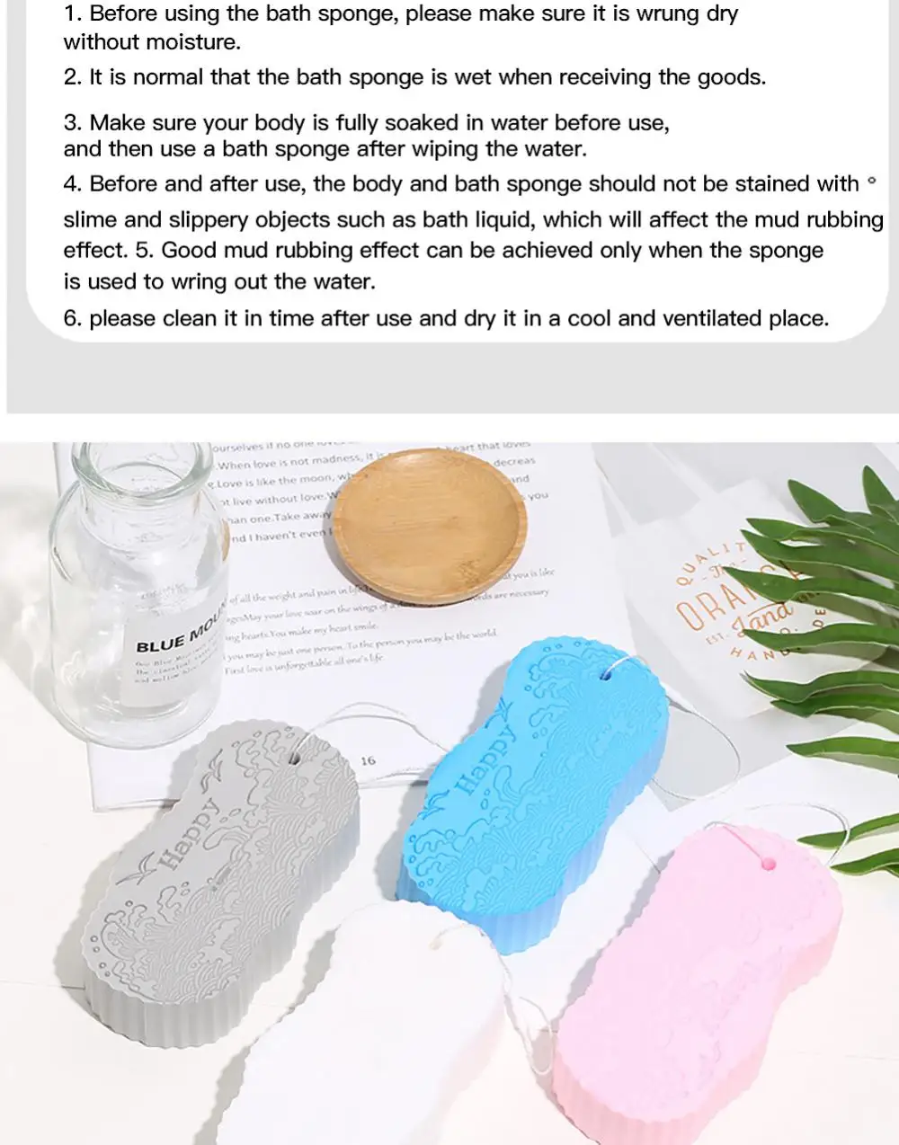 1. Изготовлен из мягкой губки высокой плотности, приятен для кожи, легко натирается, не повреждая кожу.