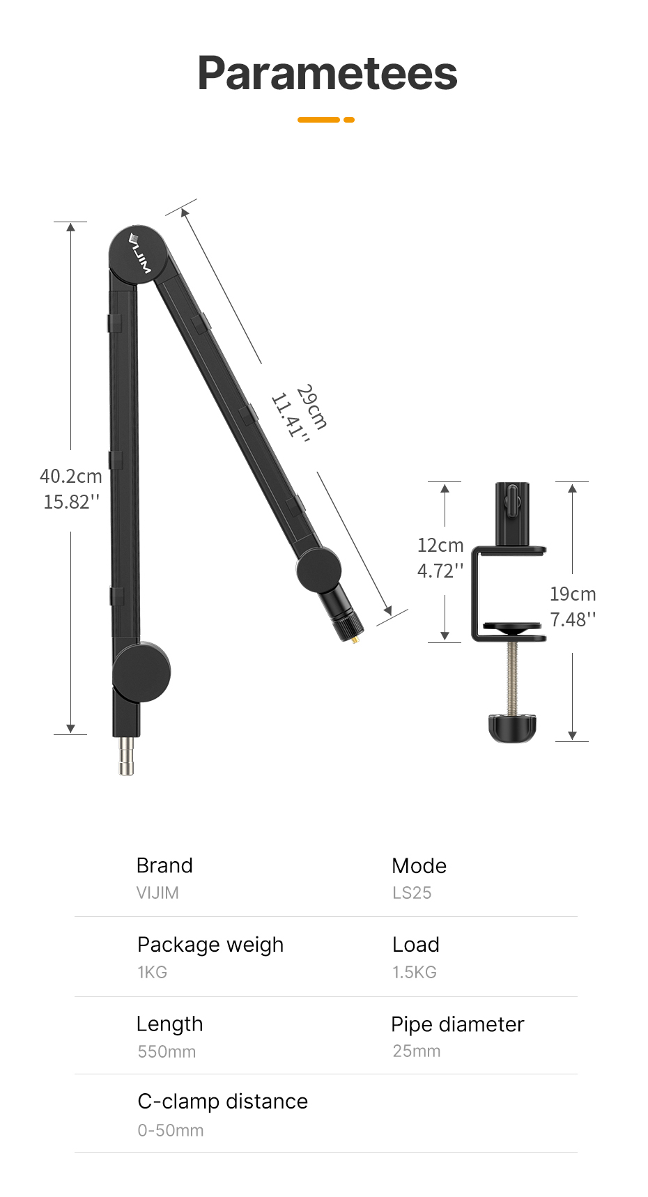 Гибкая настольная подставка VIJIM LS25 с C-образным зажимом