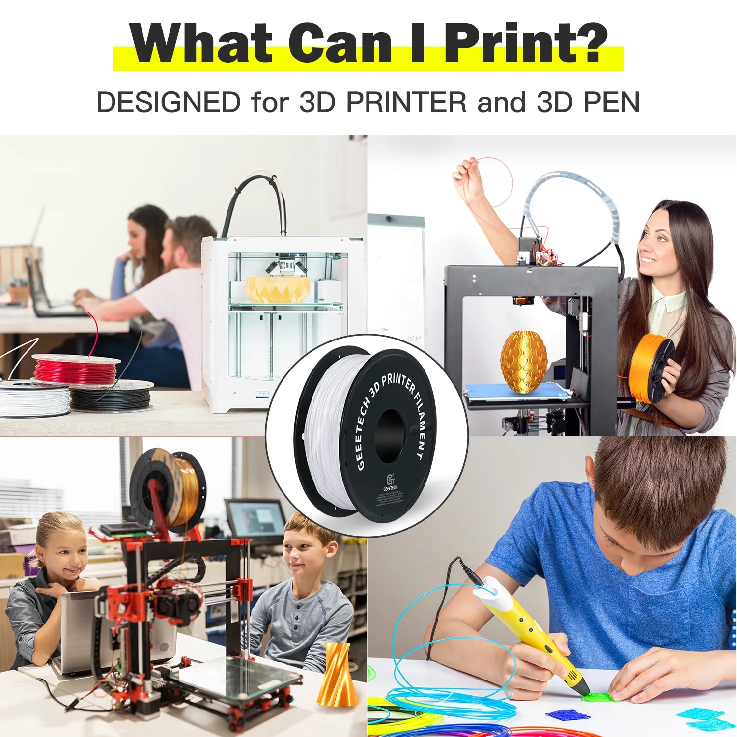 【 2 】 Нить для 3D-принтера диаметром 1,75 мм + / -0,05 мм, совместима с большинством 3D-принтеров FDM и 3D-ручек