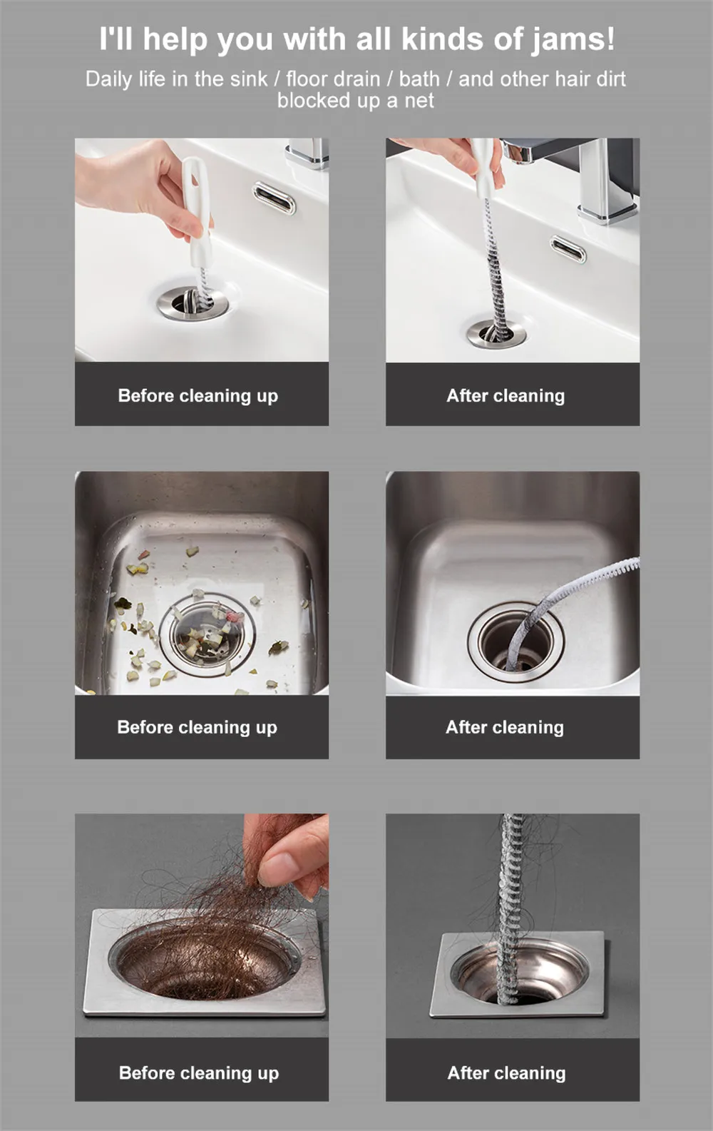 Для труднодоступных пространств и легкого удаления мусора в трубах. Больше никаких проблем с блокировкой раковины.