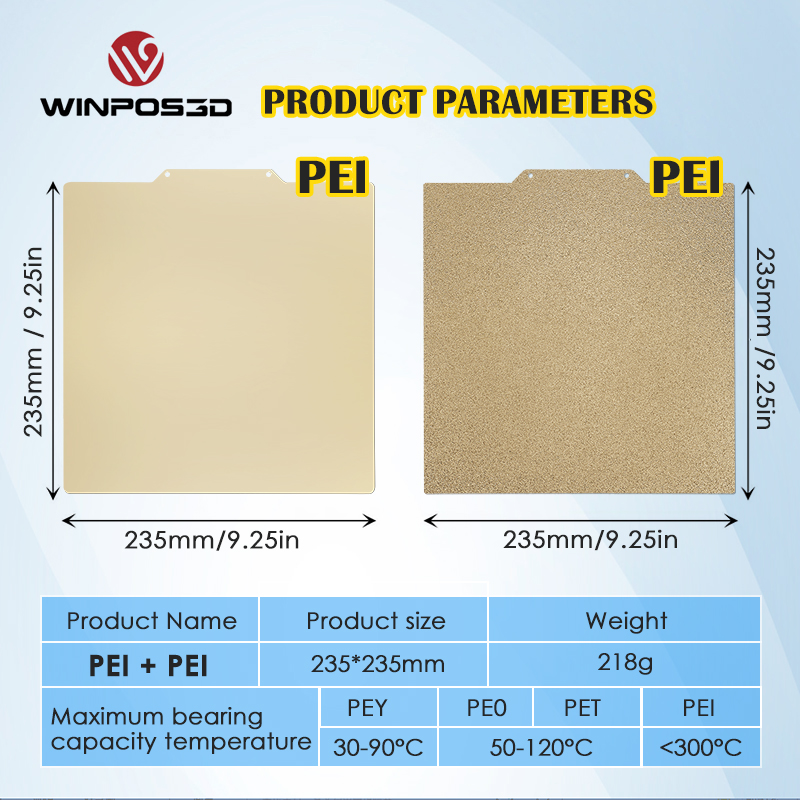② Двухсторонний лист пружинной стали PEI текстурированный и гладкий * 1 (одна сторона покрыта силовым покрытием PEI, а другая сторона-гладкая пленка PEIfilm), с магнитным основанием или без.