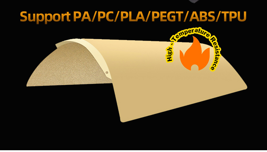 • PET/PEO/PEY обеспечивает гладкую поверхность, которая помогает напечатанным объектам прилипать к ложу и обеспечивает равномерную адгезию первого слоя печати. Он обеспечивает прочную адгезию, легко чистится и обслуживается, что делает его подходящим для печатных материалов: PLA