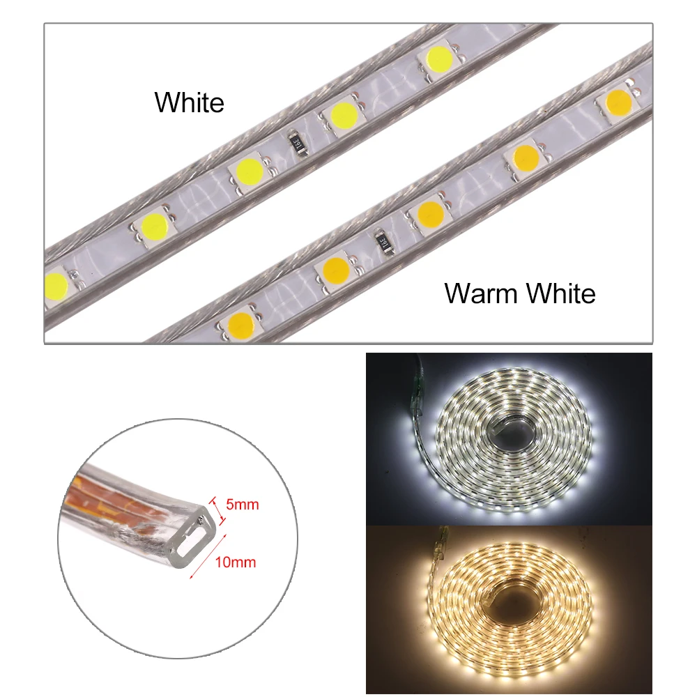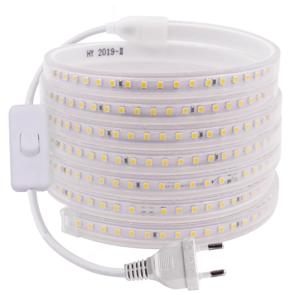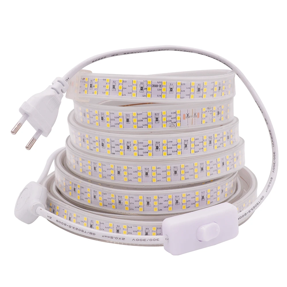 Гибкая светодиодная лента 220, 2835 в, 276 светодиодов/м, водонепроницаемая, с переключателем, SMD 5050, 60