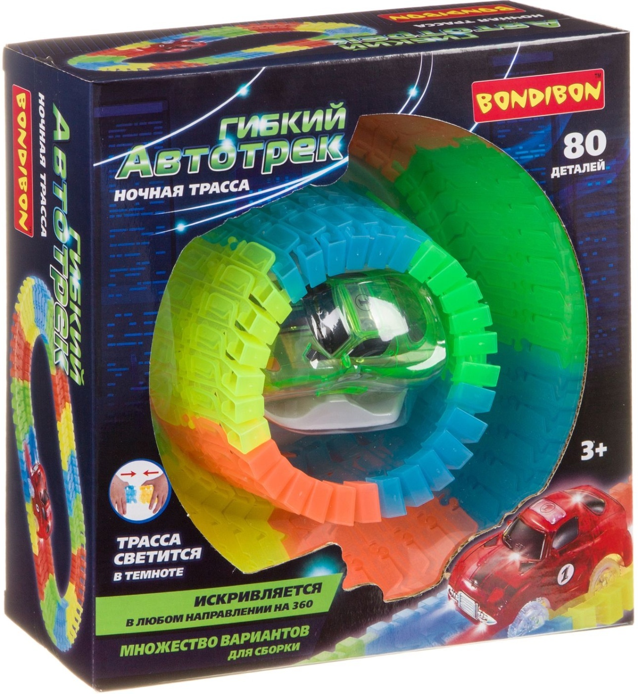 Гибкий автотрек Bondibon "НОЧНАЯ ТРАССА", со светящейся трассой и машинкой