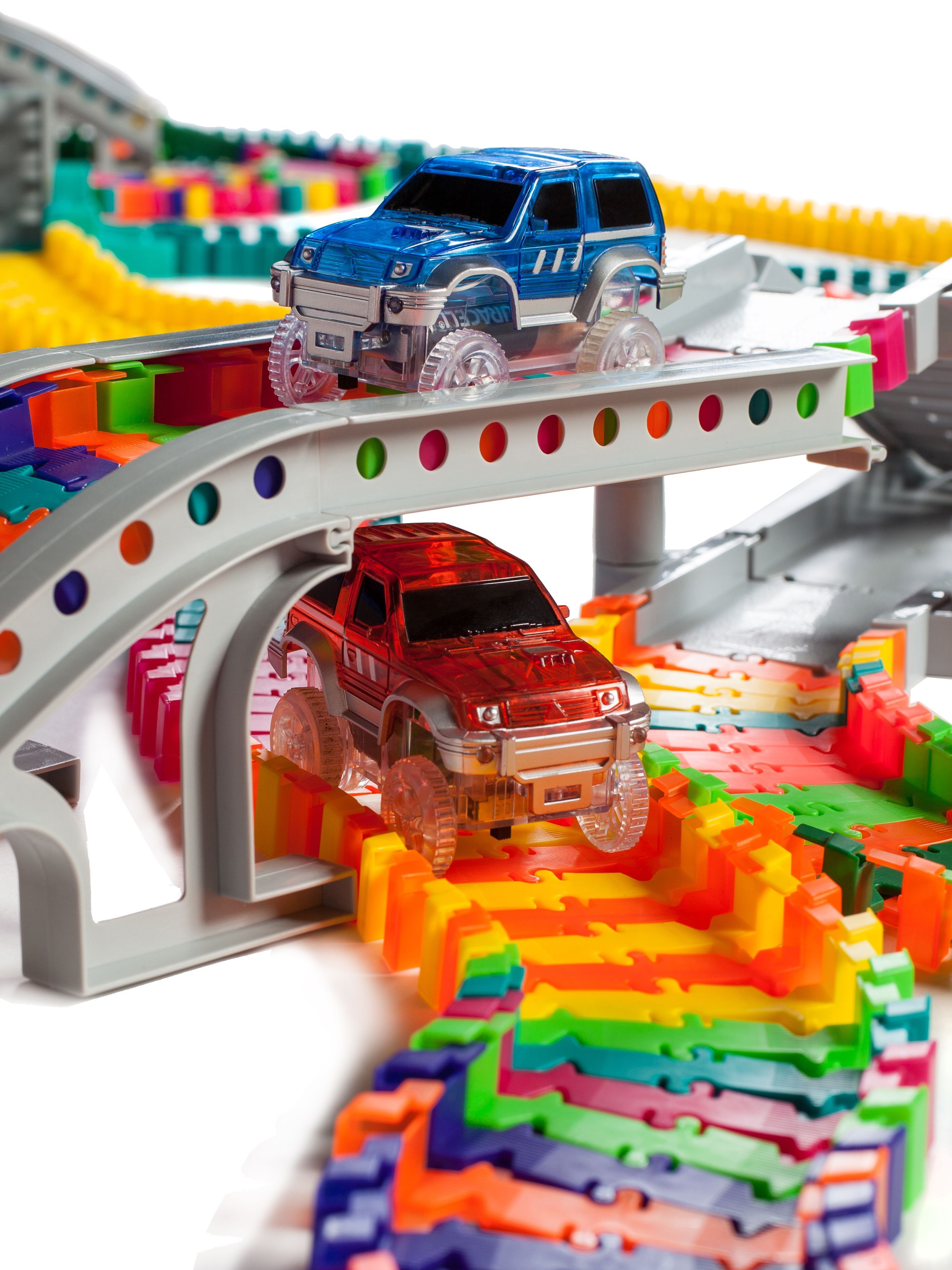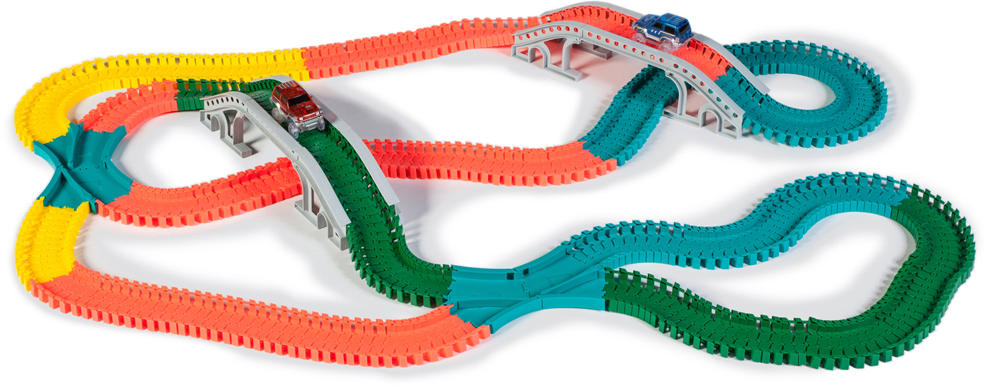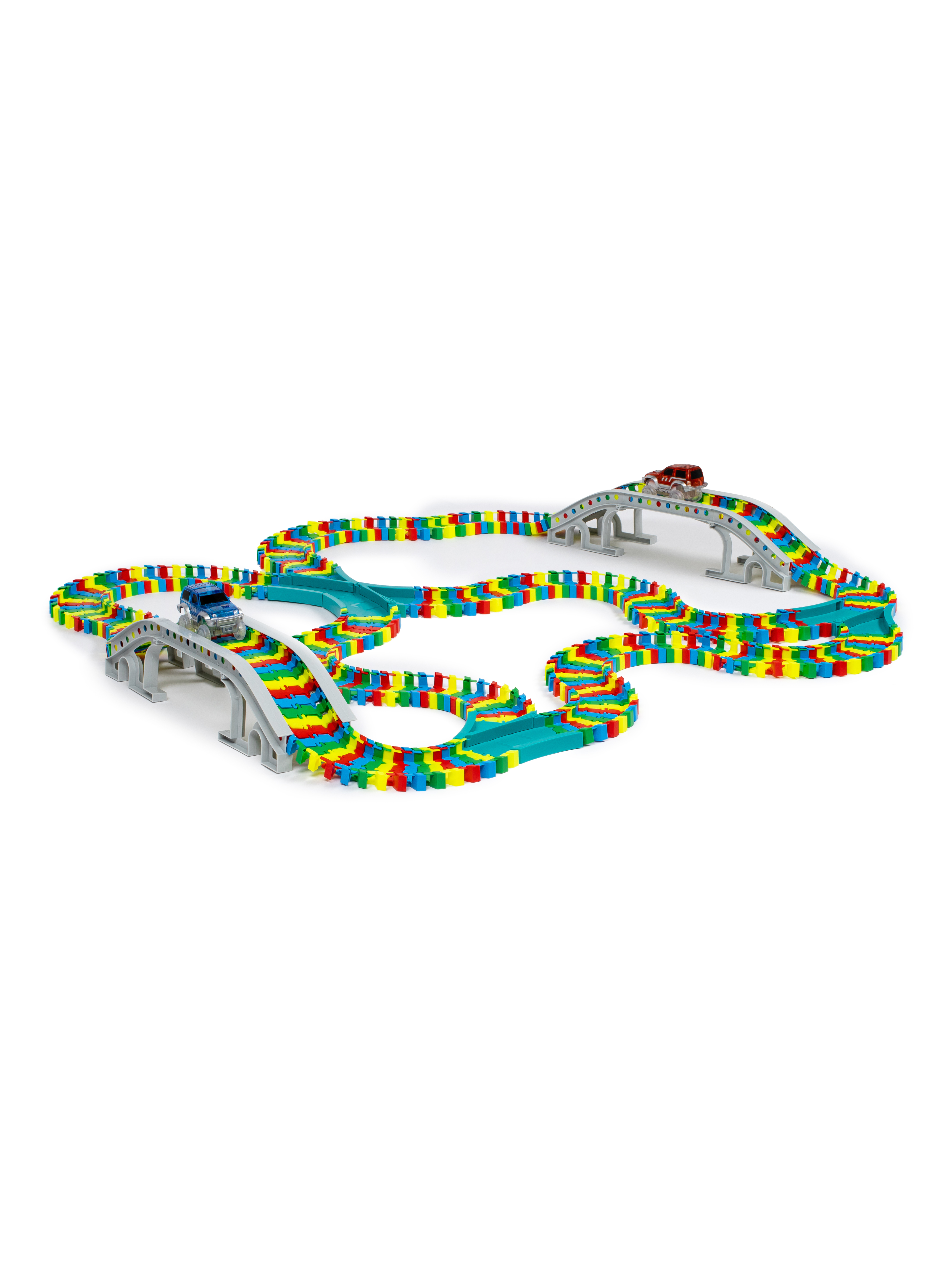 Описание: Идеальный подарокГибкая дорога-конструктор развивает воображение. В комплекте две светящиеся машинки.Яркие красочные детали400 ярких элементов дороги, два моста, четыре перекрестка со стрелкой, множество вариантов сборки.Только качественные материалыВаш непоседа увлечется надолго - круто сделано в России!