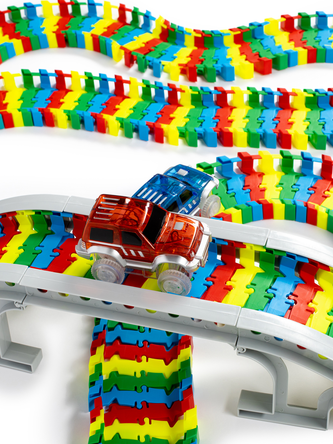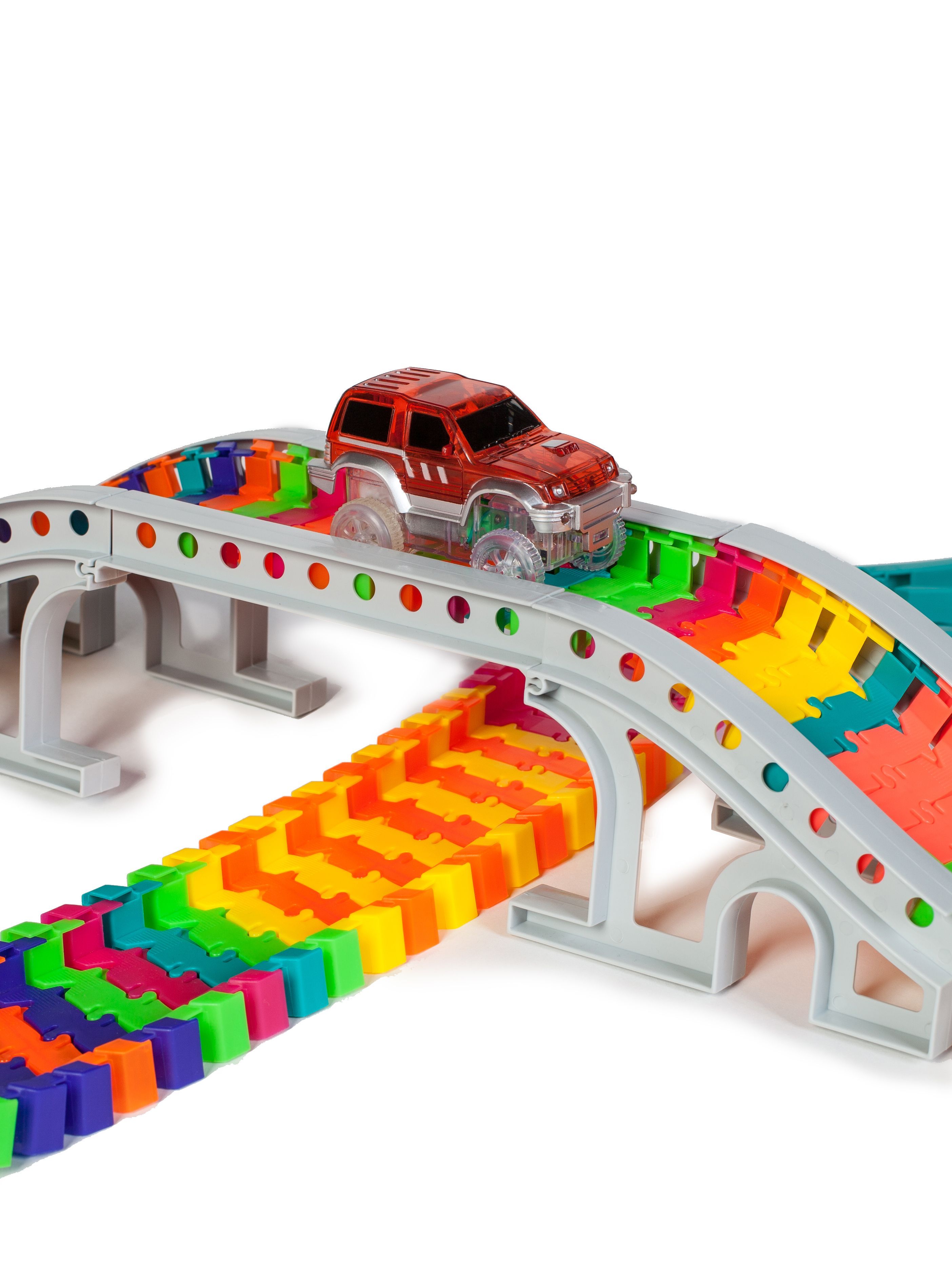 Описание: Идеальный подарокГибкая дорога-конструктор развивает воображение. В комплекте две светящиеся машинки.Яркие красочные детали250 ярких элементов дороги, мост, два перекрестка со стрелкой, множество вариантов сборки.Только качественные материалыВаш непоседа увлечется надолго - круто сделано в России!