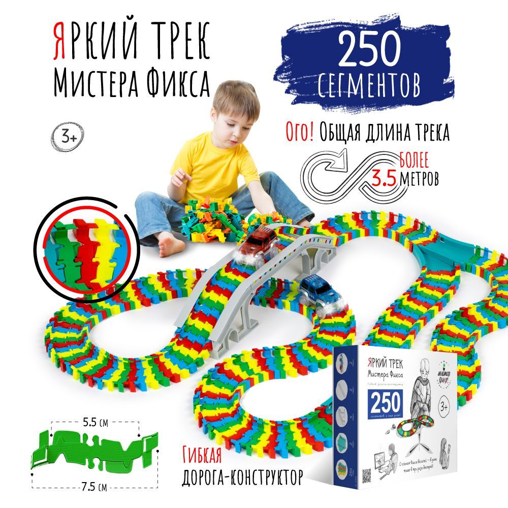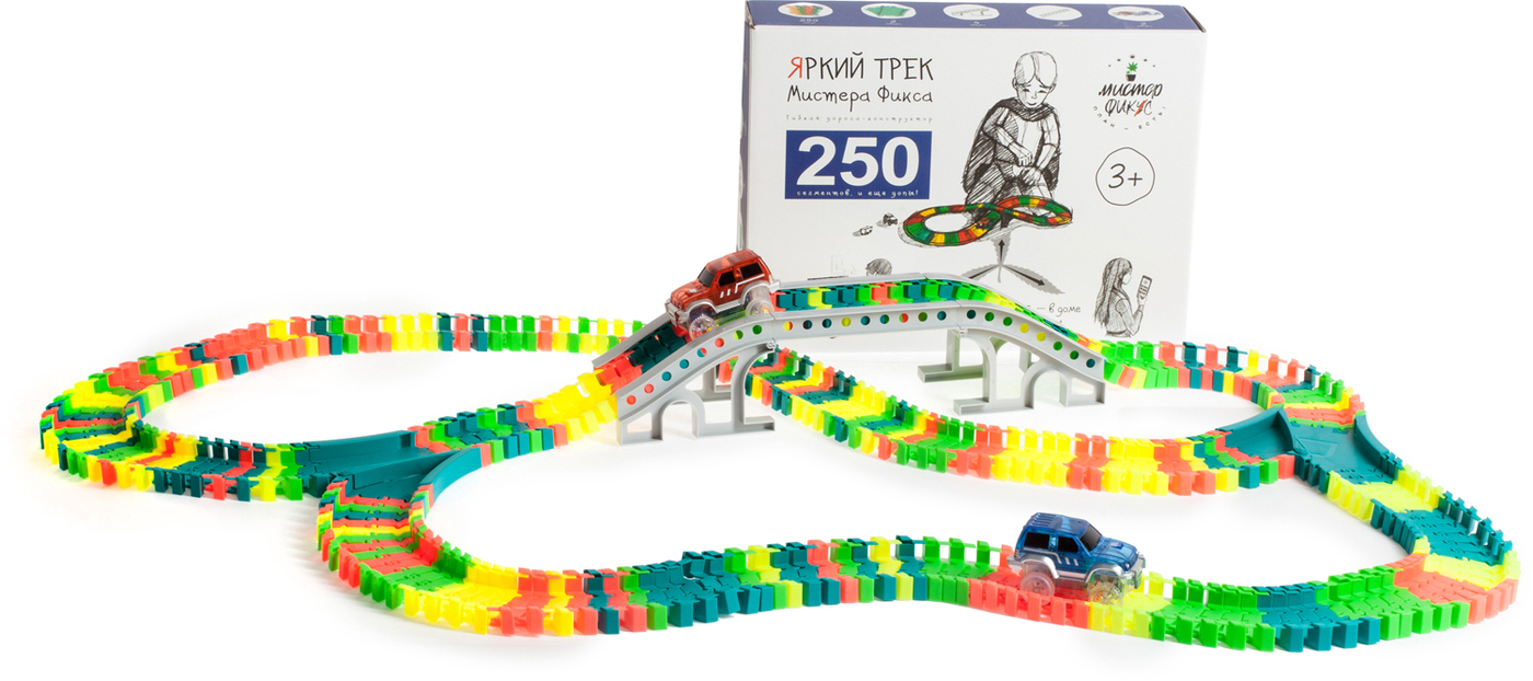 Гибкий автотрек с машинками, Яркий трек Мистера Фикса