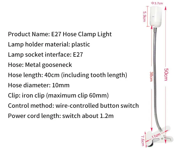 Гибкий Настольный держатель для лампы с вилкой Стандарта ЕС и США на 360 градусов, цоколь E27, оссветильник ительная розетка, кабель с выключателем ВКЛ./ВЫКЛ. Для домашнего завода