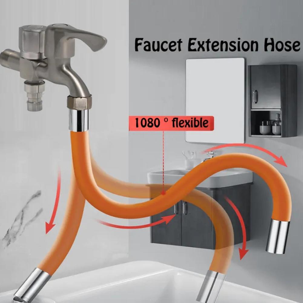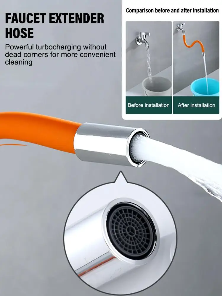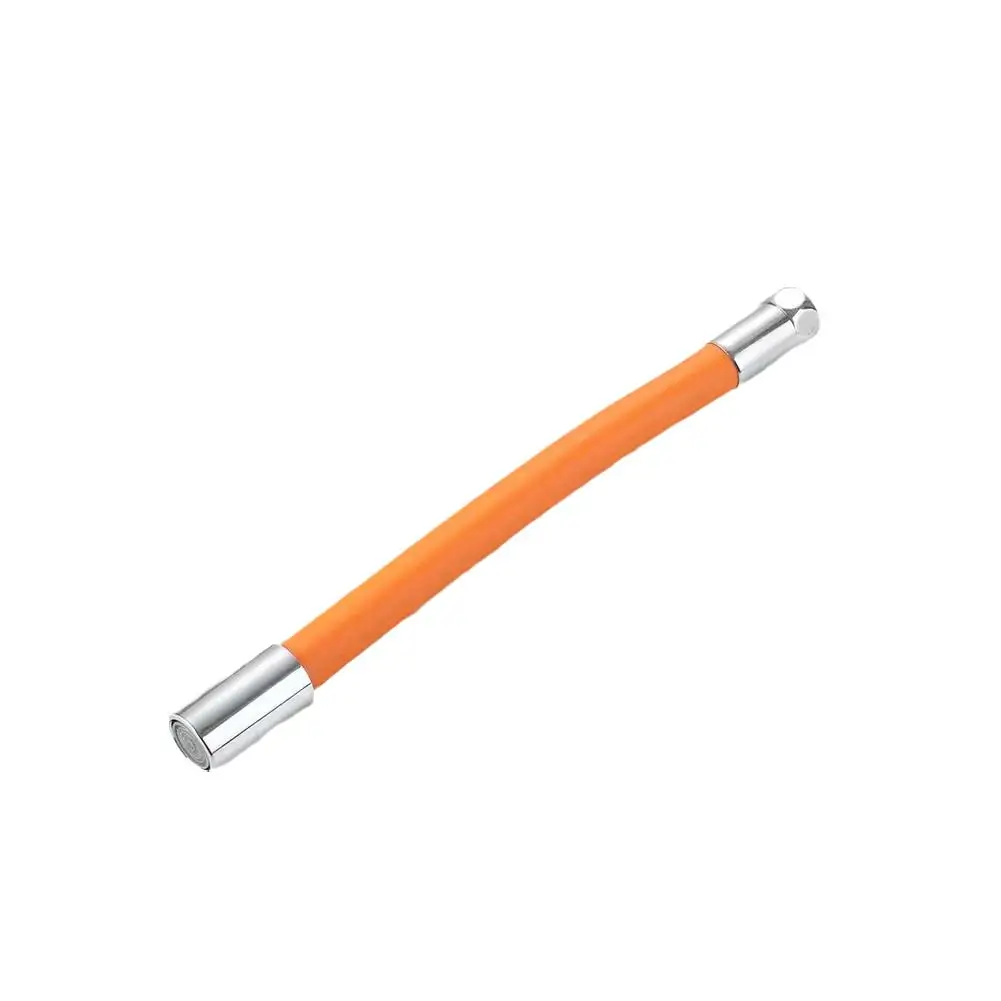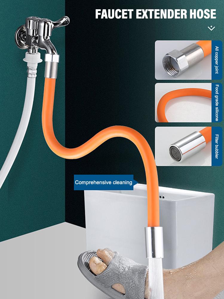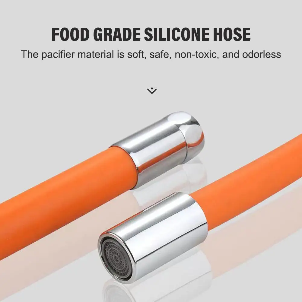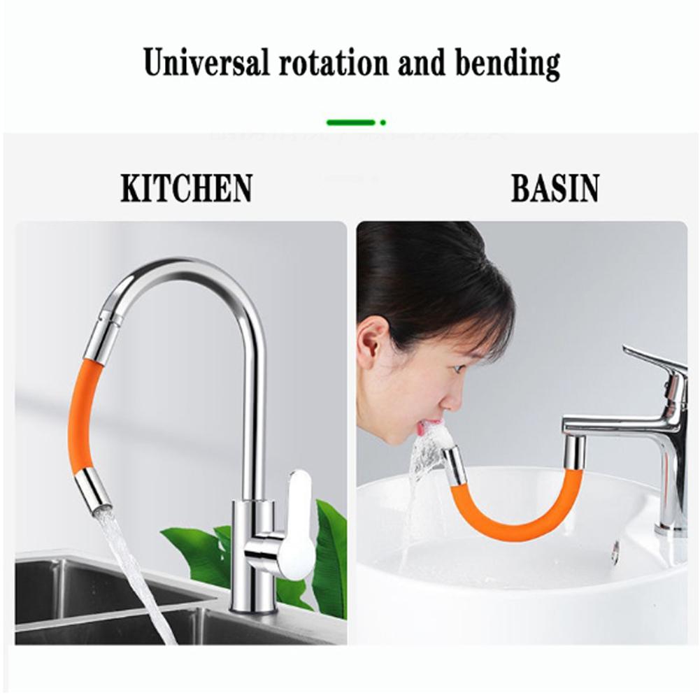 ГИБКИЙ УГЛОВЫЙ ШЛАНГ: Удлиненный шланг брызгозащищенного смесителя сохраняет свое положение под любым углом, очищая тарелки, овощи или фрукты обеими руками. Обеспечивает больше удобства для мытья и уборки кухни. Еще намного больший угол, чем без удлинительной трубки, может поворачиваться на 360 градусов, и вращение проще и не требует усилий.