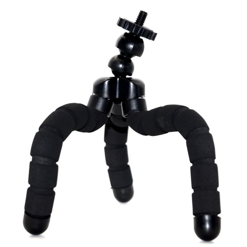 Описание: Универсальный гибкий штатив по типу осьминога. Изготовлен из жесткого пластика основные подвижные его части, подходит для легких камер по типу экшн.