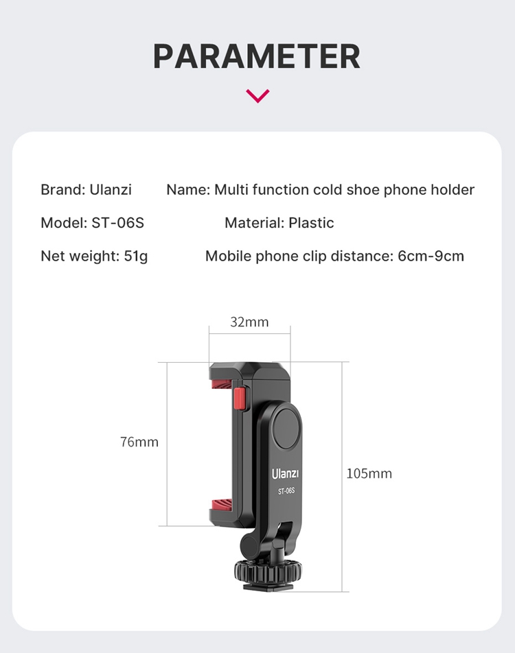 Ulanzi ST-06S Держатель для телефона Зажим для горизонтальной и вертикальной съемки для смартфона Крепление для холодной обуви Видеофон