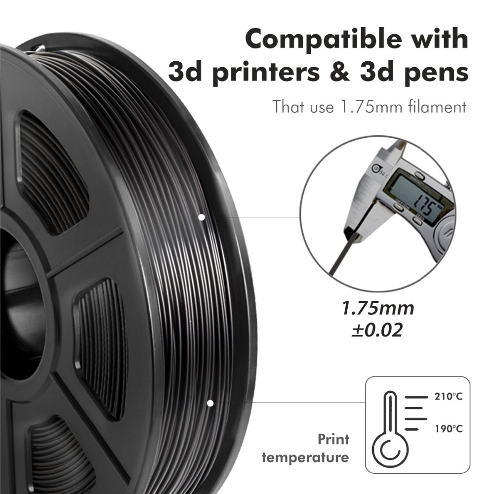 Нить 1,75mm 0,5 kg черноты гибкой TPU нити печатания SUNLU 3D (1.1LB) Dimens