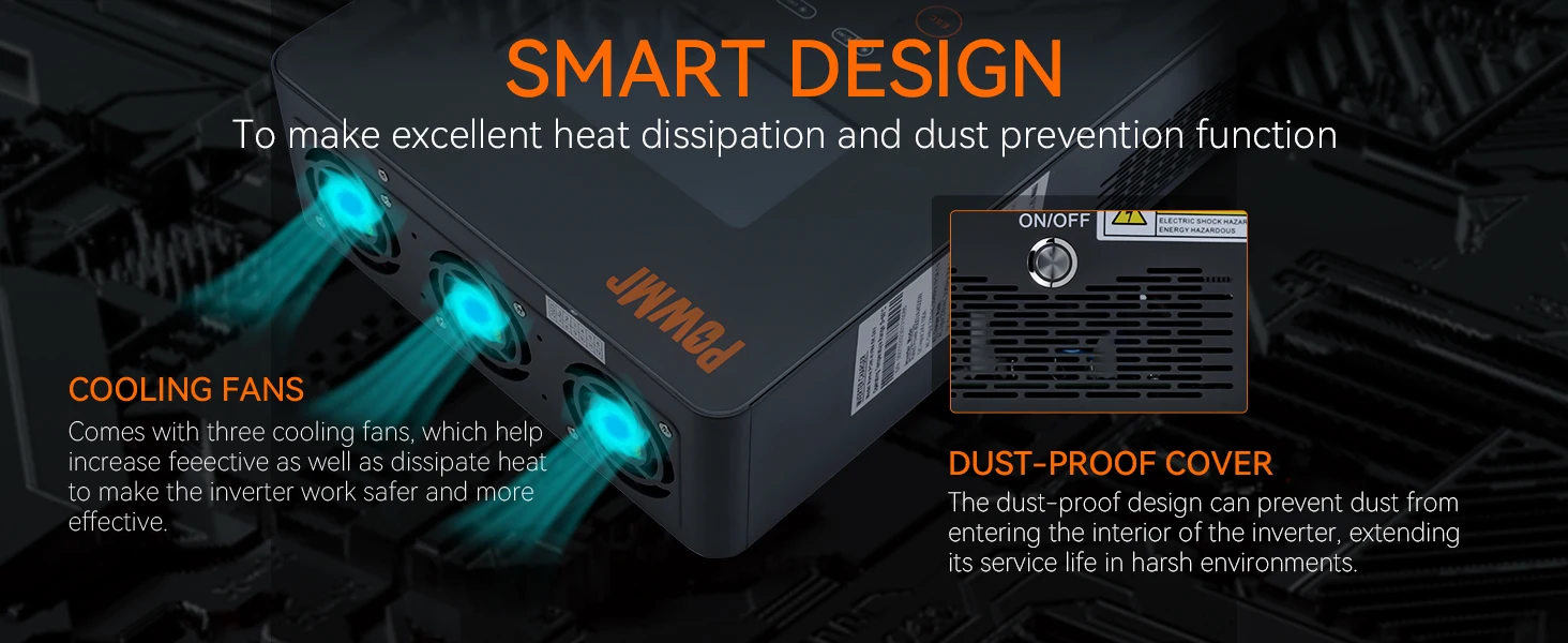 Широкое Применение:Максимальная номинальная мощность этого гибридного инвертора составляет до 6,5 кВт, что может обеспечивать мощность различных электрических устройств дома или в офисе, включая электроприборы, такие как лампы, вентиляторы, холодильники, кондиционеры, кофемашины и т. д.