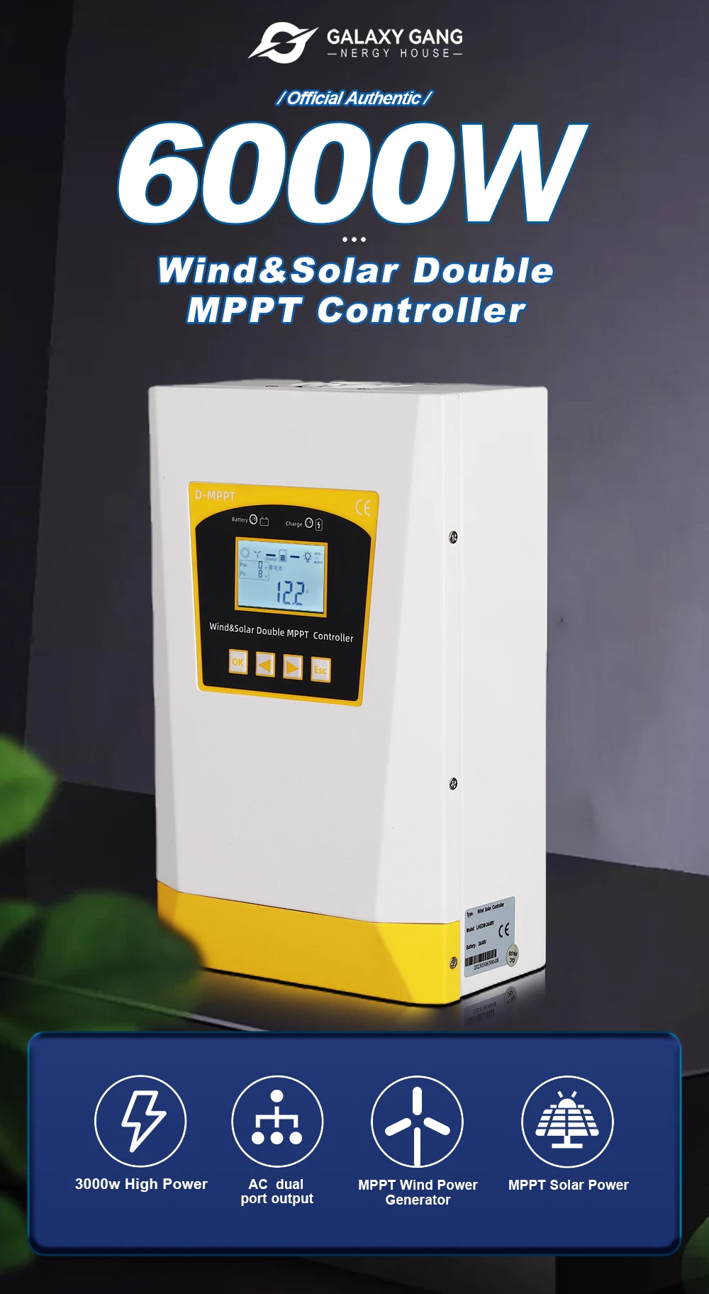 Двойной MPPT ветроэнергетическая гибридная система зарядки солнечного контроллера 6000W 12V 24V и 24V 48v автоматический регулятор домашнего использования ветряная мельница генератор
