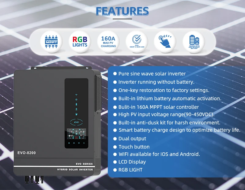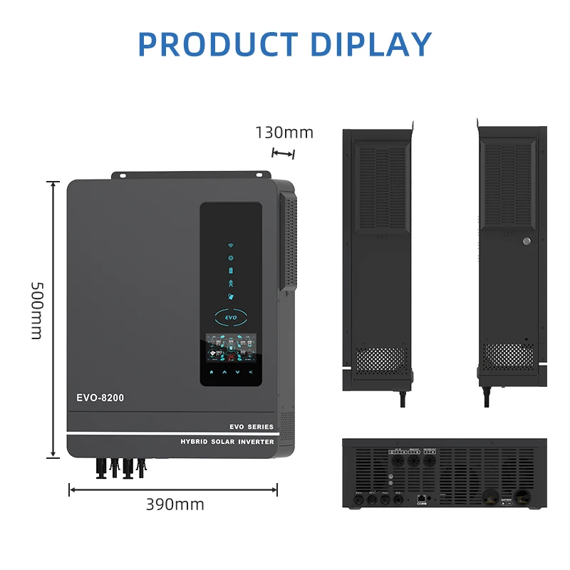 Доступ MPPT MAX10200 изменен с 1 канала 27A на 2 канала 18A, по-прежнему с двойным входом PV и двойным выходом AC, и недавно разработанный цветной дисплей принят во всей серии.