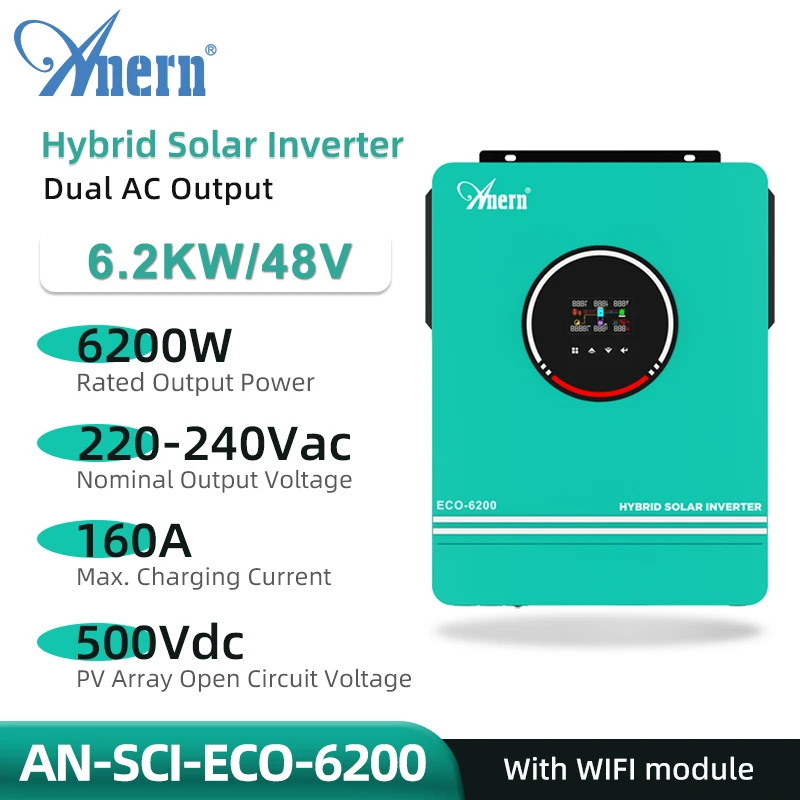 Anern 6.2KW 4.2KW солнечный инвертор Гибридный 3.6KW на сетке/вне сетки солнечный инвертор MPPT 120A солнечное зарядное устройство для макс. 500 В дополнительный Wi-Fi