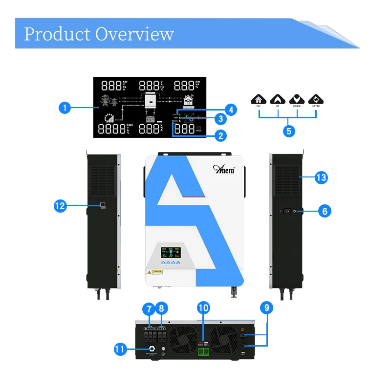 Гибридный солнечный инвертор Anern 6.2KW 4.2KW 3.6KW 3.6KW