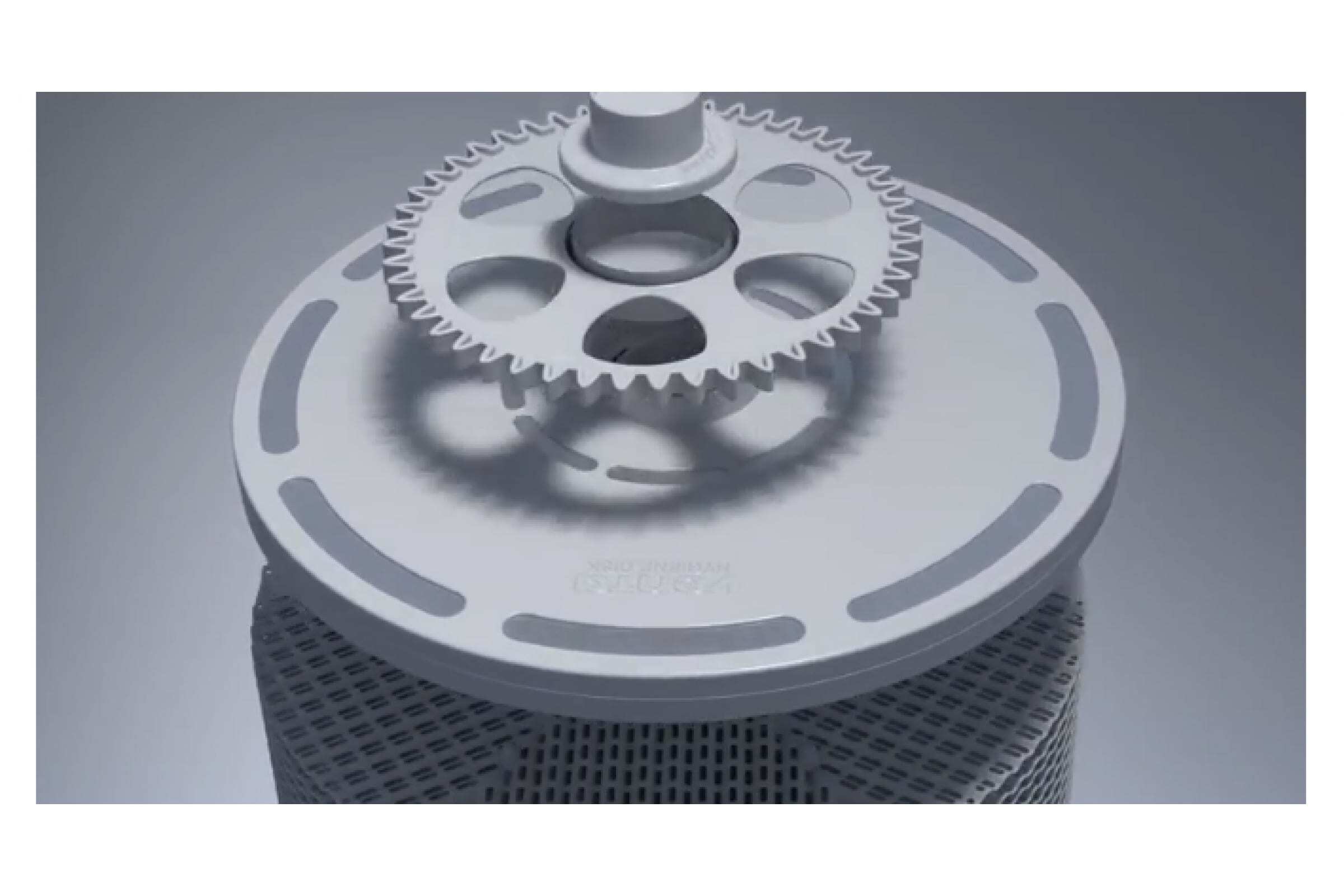 Гигиенический диск крепится на пластинчатом барабане и вместе с ним вставляется в поддон. Вода проходит сквозь вращающийся в воде диск, смачивает гранулы, запуская ионный обмен.