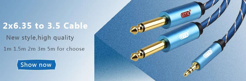 EMK 6.3 Jack Cable 6.35mm Aux Cable dual 6.5 Jack Male to Male 6.35 audio Cable 2m 3m 5m 8m 10m Guitar Lead For Electric Guitar, Bass