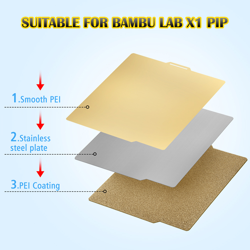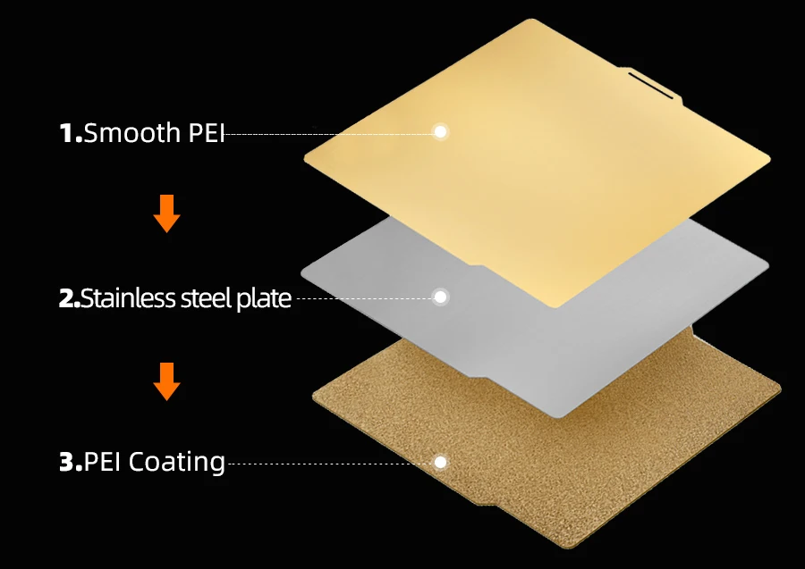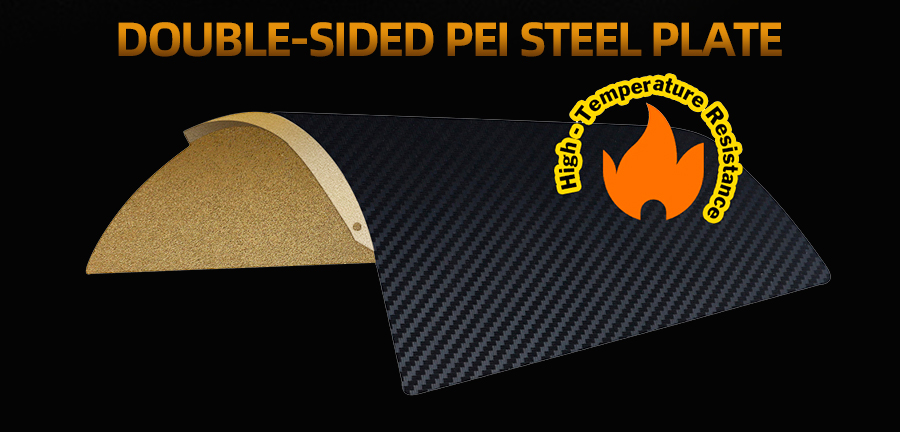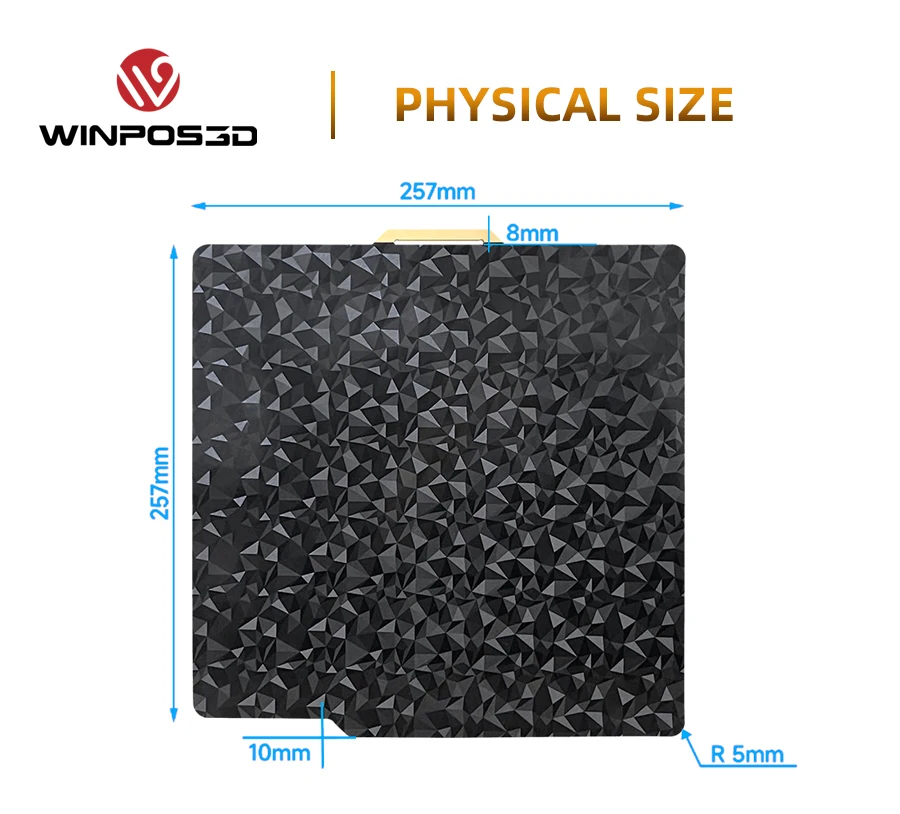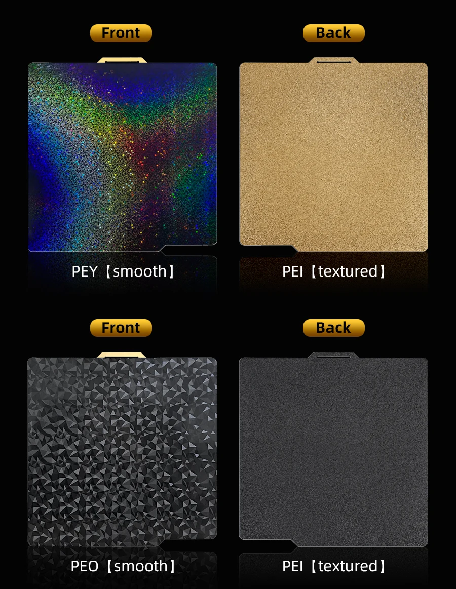 • Двусторонняя текстура PEI + Гладкая пленка PEY лист из пружинной стали * 1 (одна сторона покрыта силовым покрытием PEI, а другая сторона-пленка PEY)