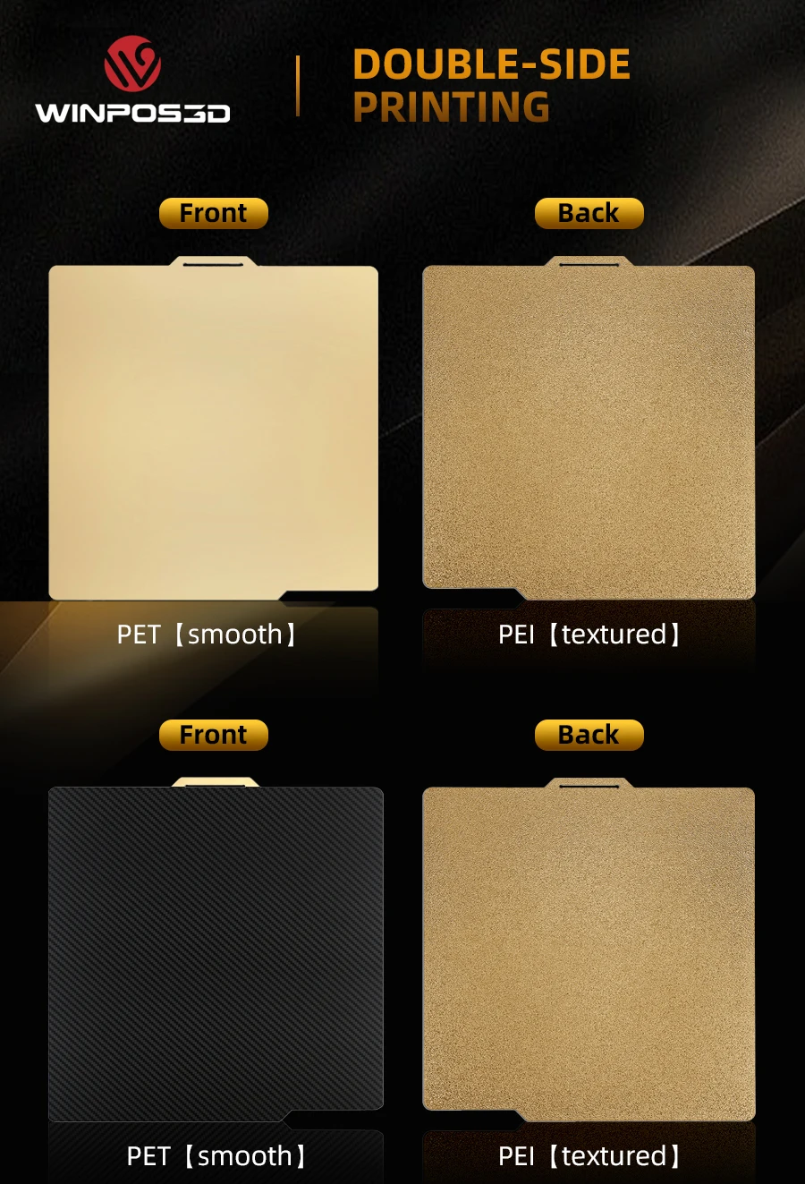 • Двусторонняя текстура PEI + Гладкая ПЭТ-пленка лист из пружинной стали * 1 (одна сторона покрыта силовым покрытием PEI, а другая сторона-нанесена ПЭТ-пленка)