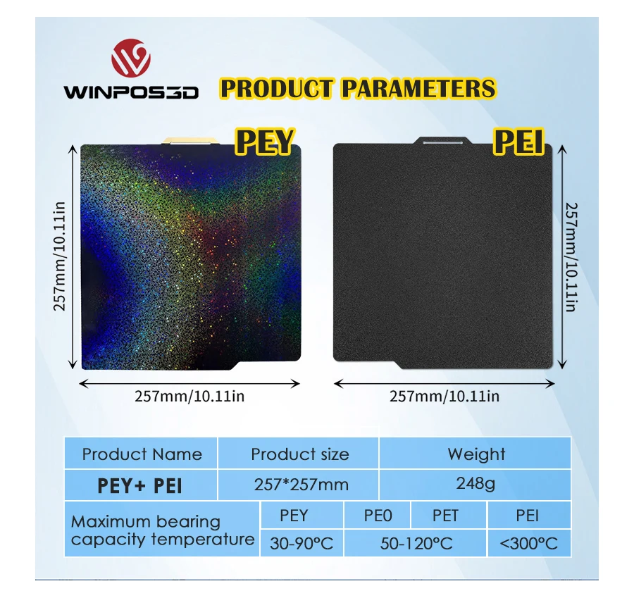 1x обновление 257*257 мм сборочная пластина PEI-PEI/PET-PEI/PEY-PEI/PEO-PEI