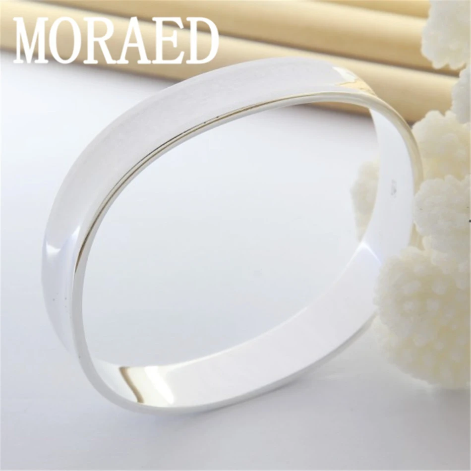 Гладкий однотонный браслет из серебра 925 пробы для женщин и мужчин, очаровательные праздничные Роскошные ювелирные изделия