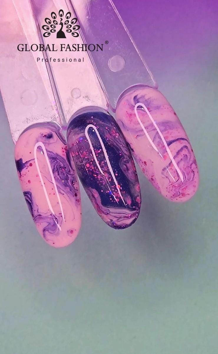 Способ применения: на подготовленную ногтевую пластину нанести базу для гель-лака, просушить. Затем по желанию нанести цветное покрытие в качестве подложки под рисунок, также полимеризовать в лампе. Нанести основу Wet effect gel (не сушить!), и по-мокрому выполнить дизайн цветными гель-лаками. Просушить в лампе 30-60 секунд, затем закрепить результат топовым покрытием.